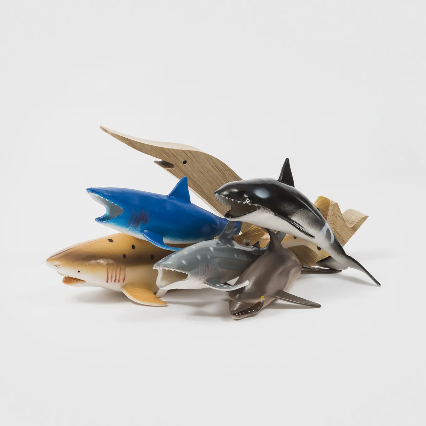 Establishing a direct, pure link between design and children toys, this superb puzzle by Enzo Mari features an enthralling modular structure taking advantage of an interlocking system crafted from a single wooden board with rounded corners. Sixteen fish silhouettes are traced into the wood through a single, continuous cut giving appealing contours to the design.