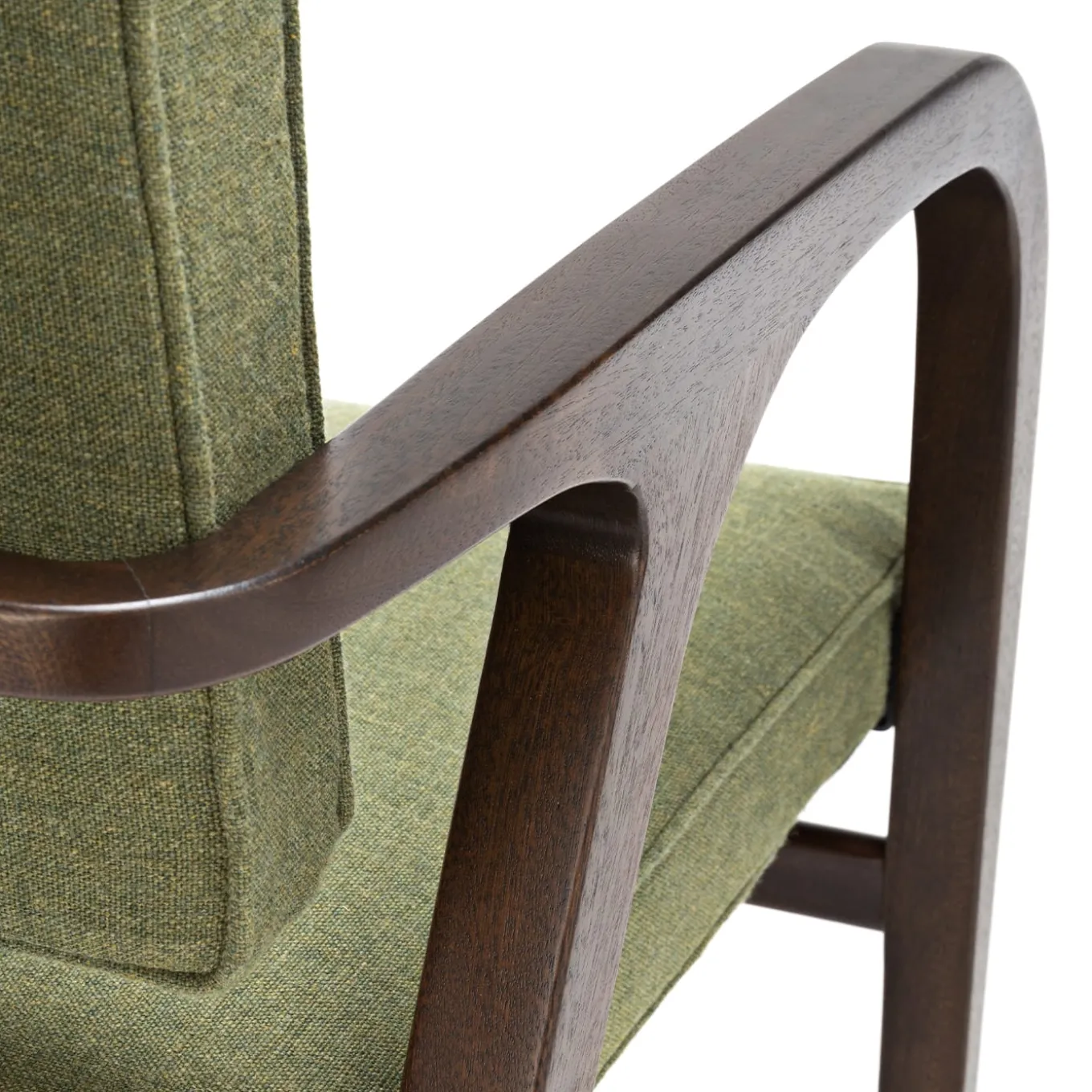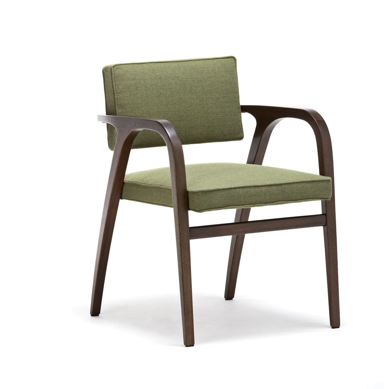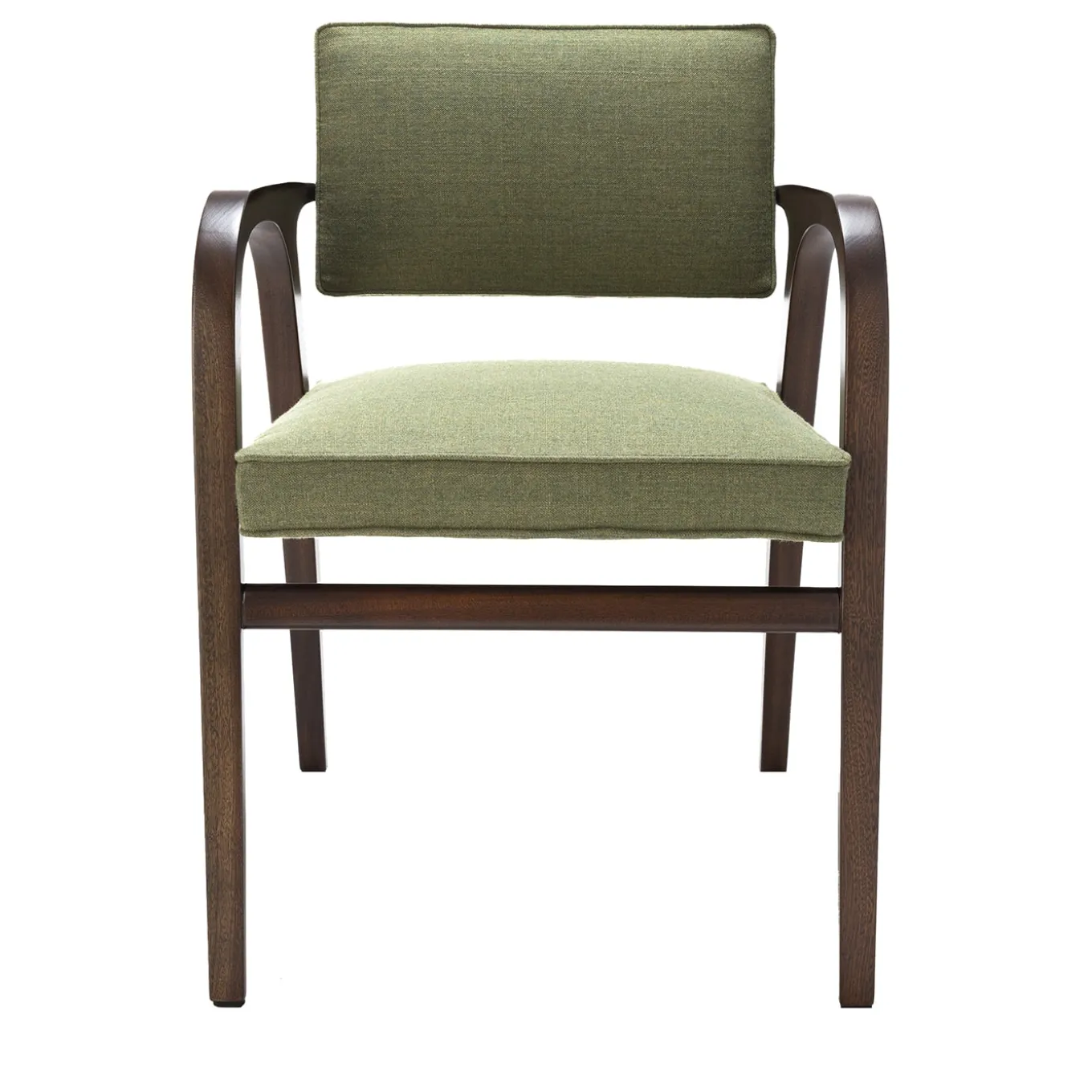An iconic design distinguished by armrests that merge aesthetic beauty and functionality, this chair is a gorgeous piece by Franco Albini, a Rationalist architect from the 20th century. Fashioned of barrique-finished mahogany, the sleek structure features a continuous movement of bold visual impact. The seat and back are covered with green fabric, entirely customizable upon request. An outdoor cover is recommended to protect the piece when left outside, please contact the Concierge. If the products are placed completely outside, nightcovers that can be purchased at an extra price are recommended. Please contact the Concierge for further information and options.