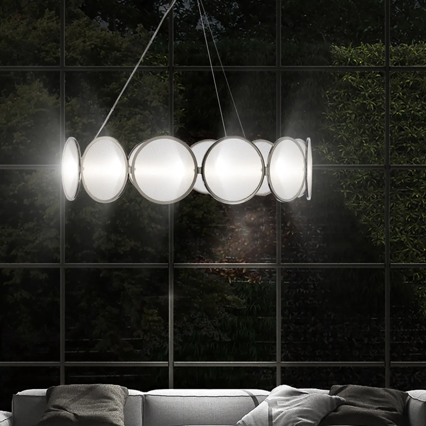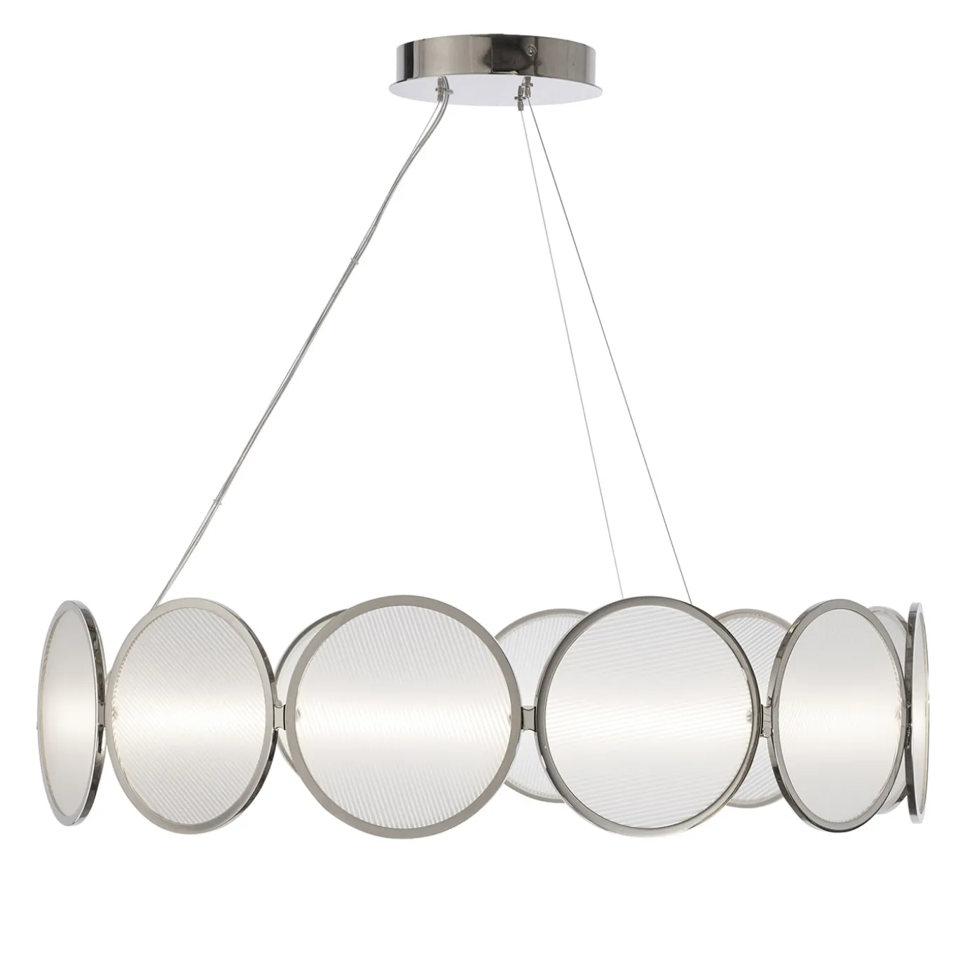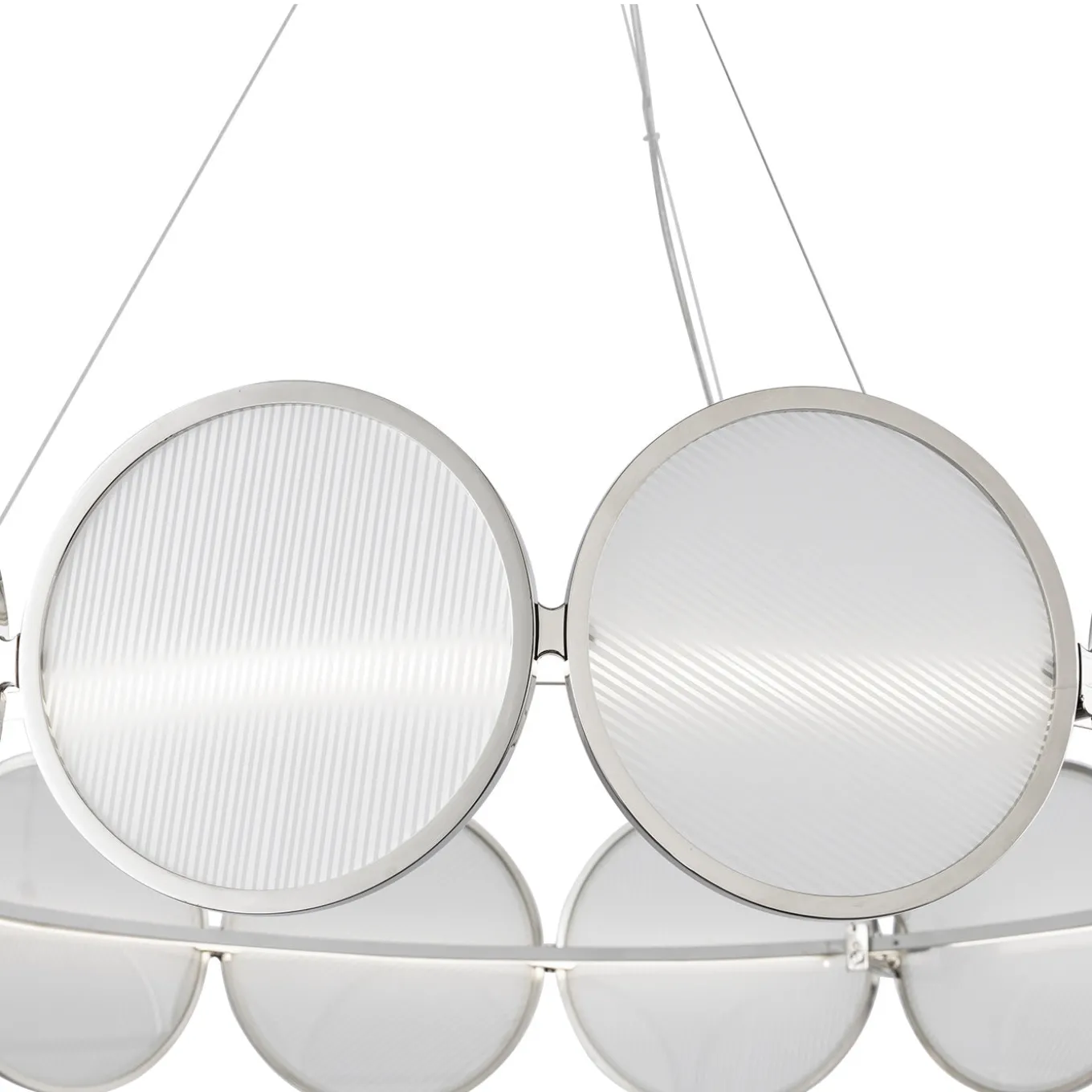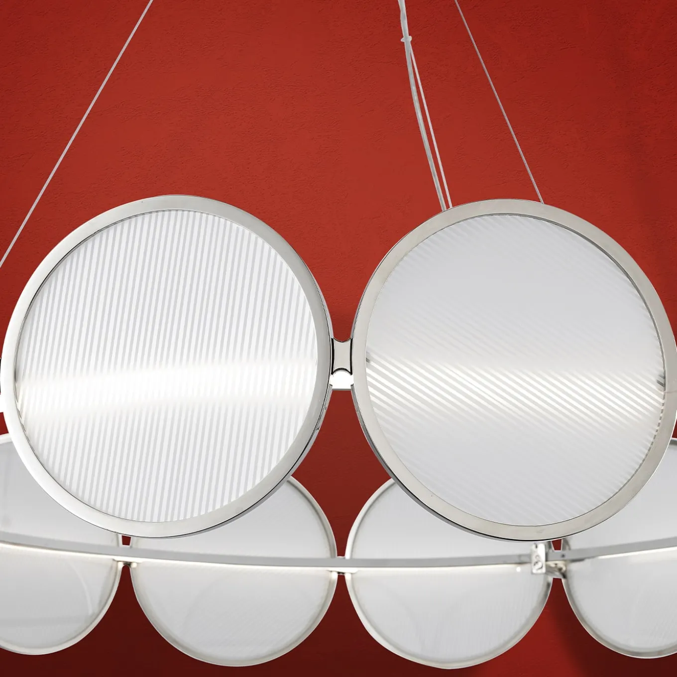 The minimalism in the shapes and the lightness of the design. Suspended in the air almost by magic, this lighting fixture combines design with technical refinement. The US version features an additional round plate in the same finish as the rest of the structure with a diameter of 12 cm (4.72”) in order to cover the j-box. Dimmable on request.