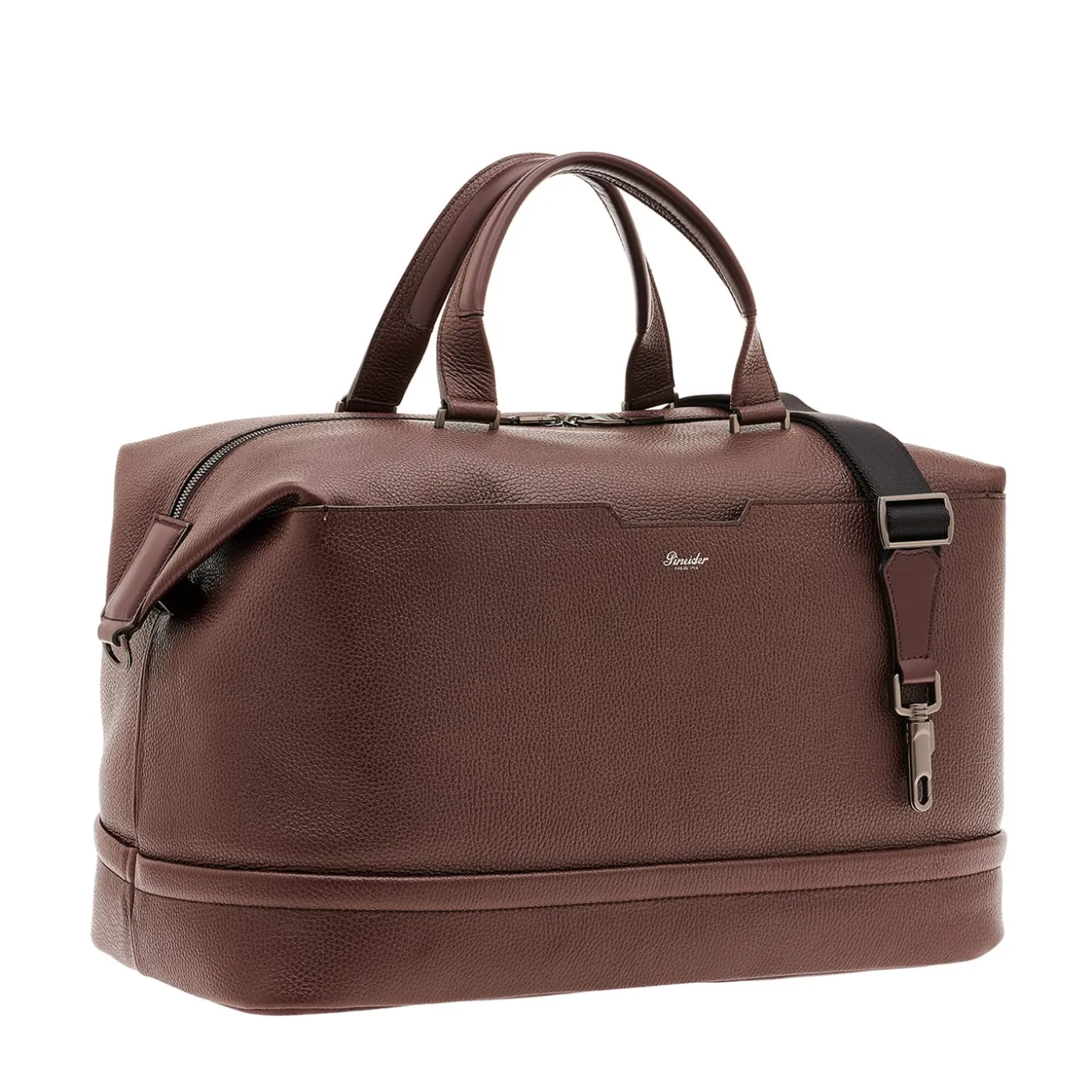 This rum-hued leather duffle bag evokes timeless sophistication, tailored for relaxed escapes or refined adventures. The rich, textured leather exterior exudes understated luxury, while its spacious yet uncluttered interior invites effortless packing. Reinforced stitching, ergonomic handles, and a secure zip closure promise resilience, making it a trusted companion for journeys where craftsmanship and character come together seamlessly.