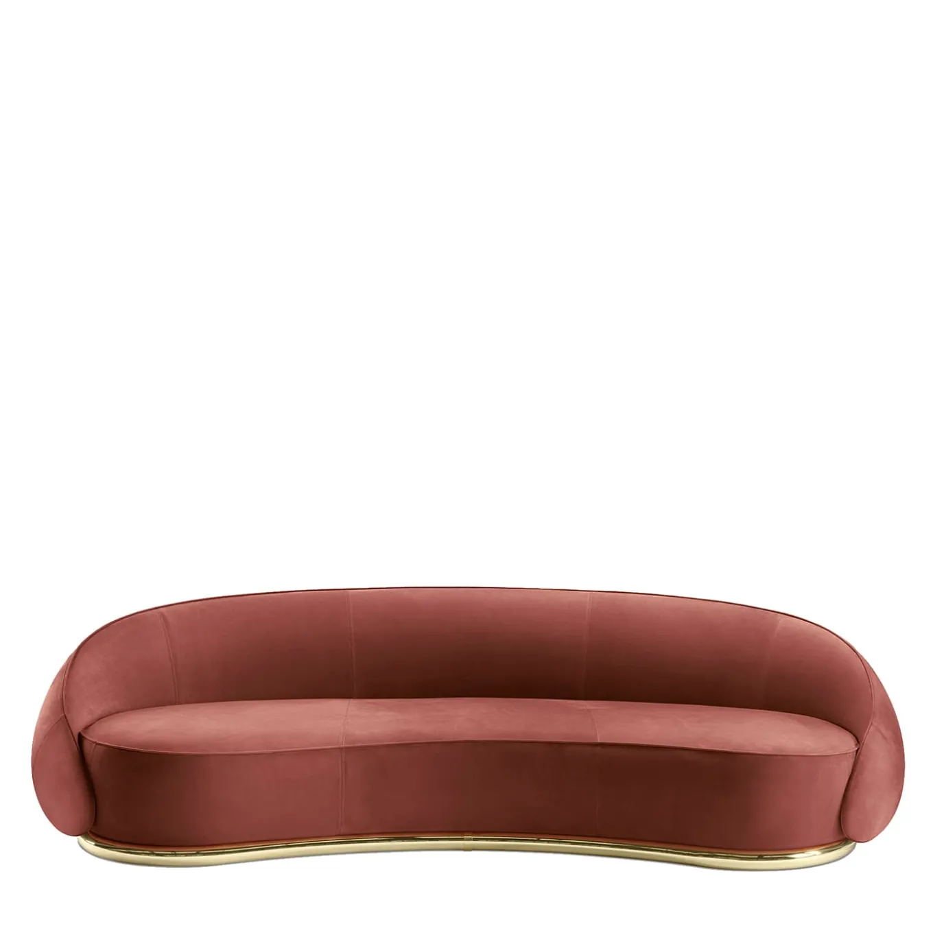 Marked by an embracing silhouette inspired by the gesture of hugging someone (“abbraccio” meaning “hug” in Italian), this superb sofa exudes a soft romantic appeal. The base is accented with a shaped ring boasting a glossy finish, adding brightness to the general red leather upholstery that envelops the seat and the curved backrest, the latter sloping to incorporate the armrests in a fluid curve. Please contact the Concierge for other color options. For the US market, please contact the Concierge for CAL TB 117 certified fabrics.