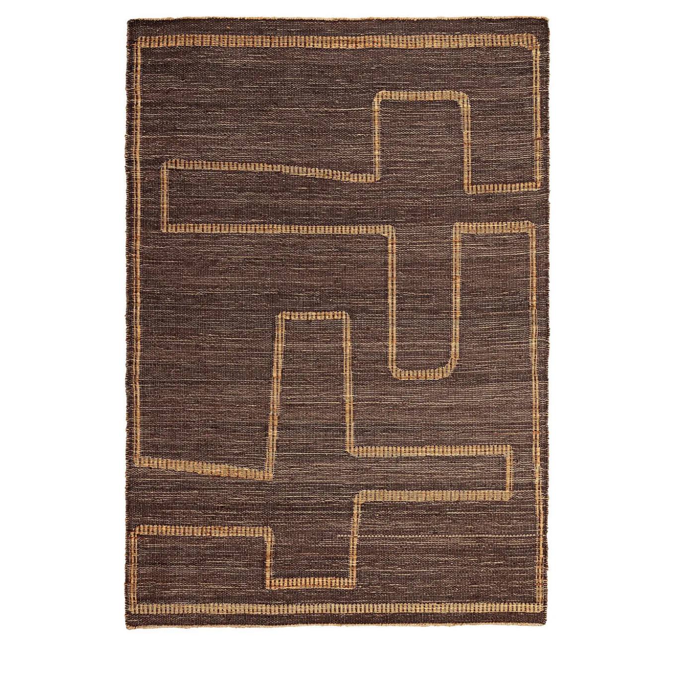 The Aboya rug showcases refined natural tones from hand-spun jute. Handwoven in India, it features a striking tribal motif and subtle profiles, with a reversible design offering two colorways. Available in different sizes. Please ask the Concierge for other informations.