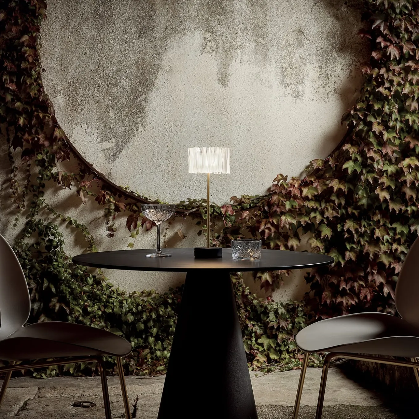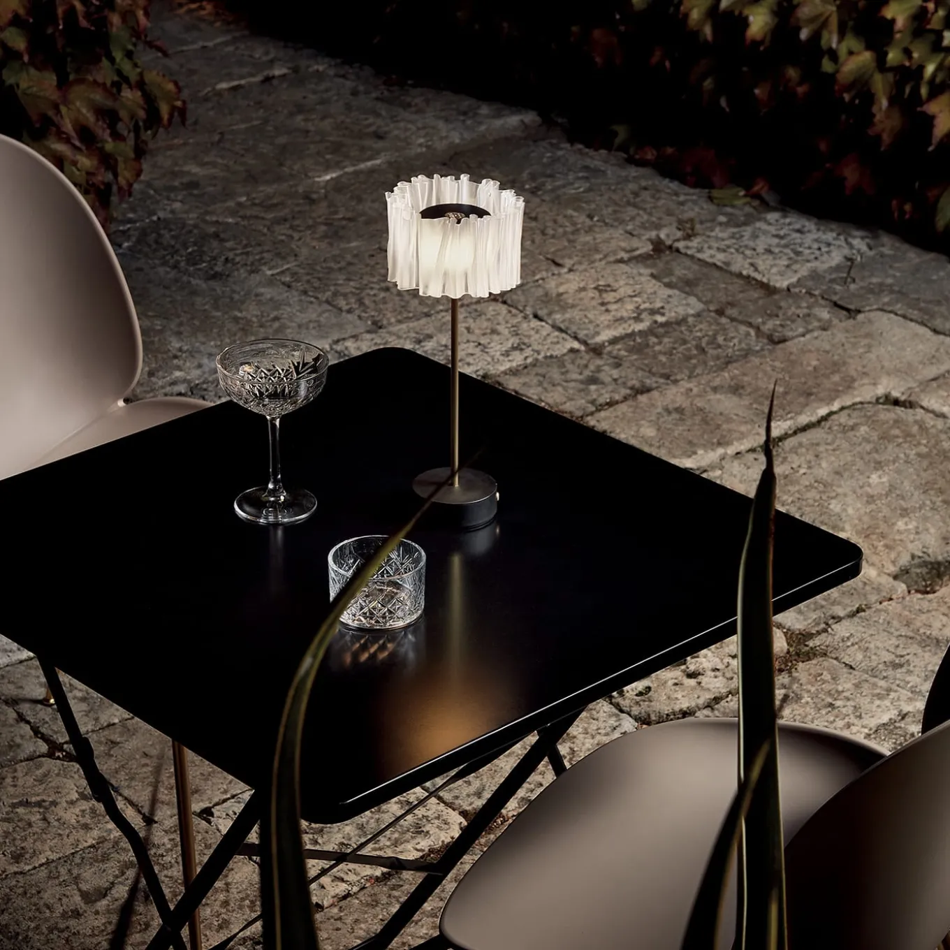 Marc Sadler explores the infinite possibilities of Slamp’s technopolymers with Accordéon, conjuring the image of a textile plissé or an accordion’s bellows. The battery-charged table version features a transparent shade finished in satin white, ensuring uniform lighting, and a white or matte black base and a semi-matte satin anodized aluminum stand, ensuring additional stability. Accordéon is perfect alone to illuminate an intimate dinner or multiple events.