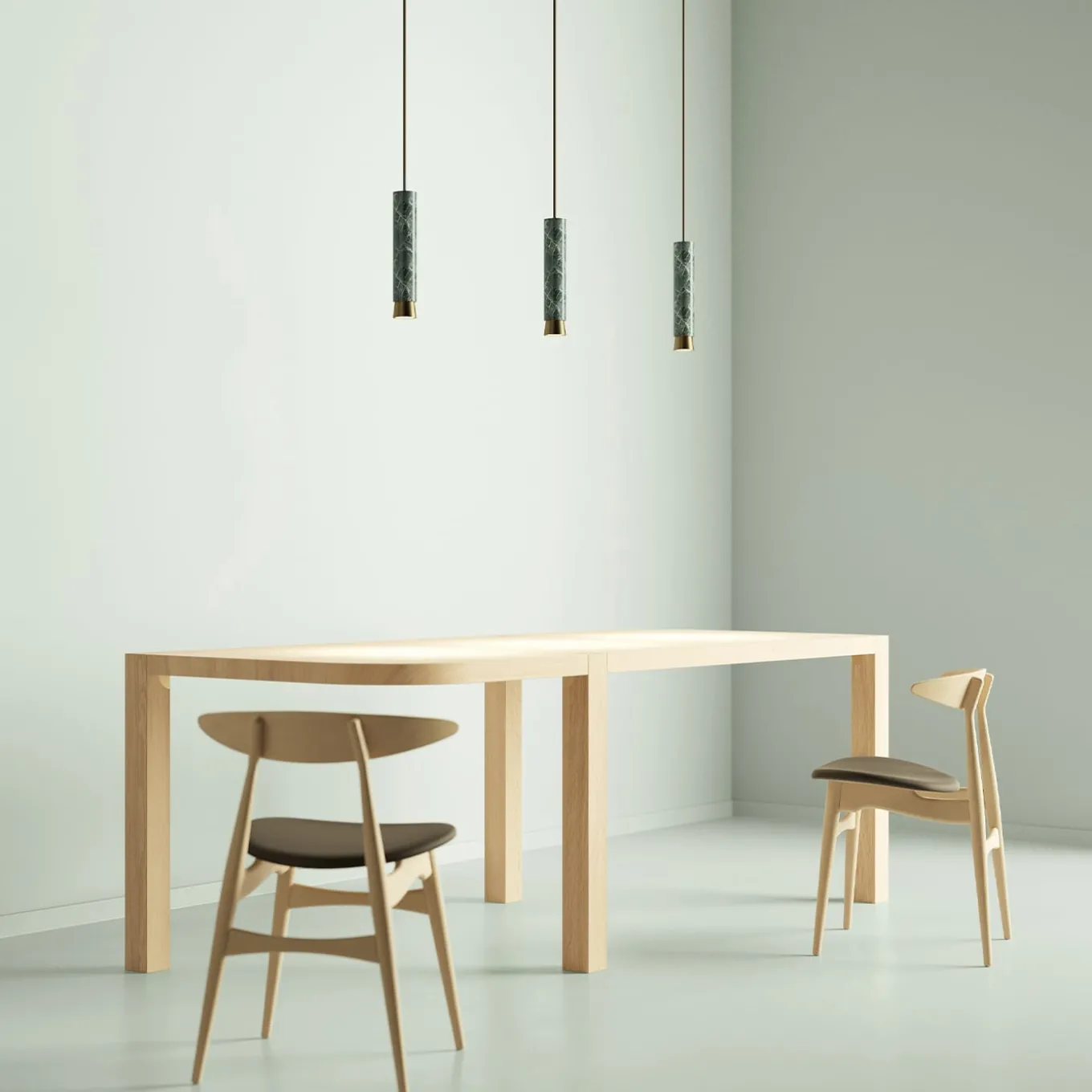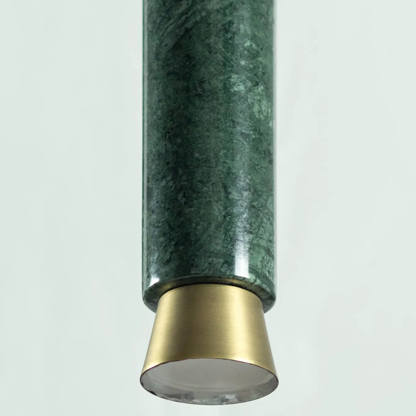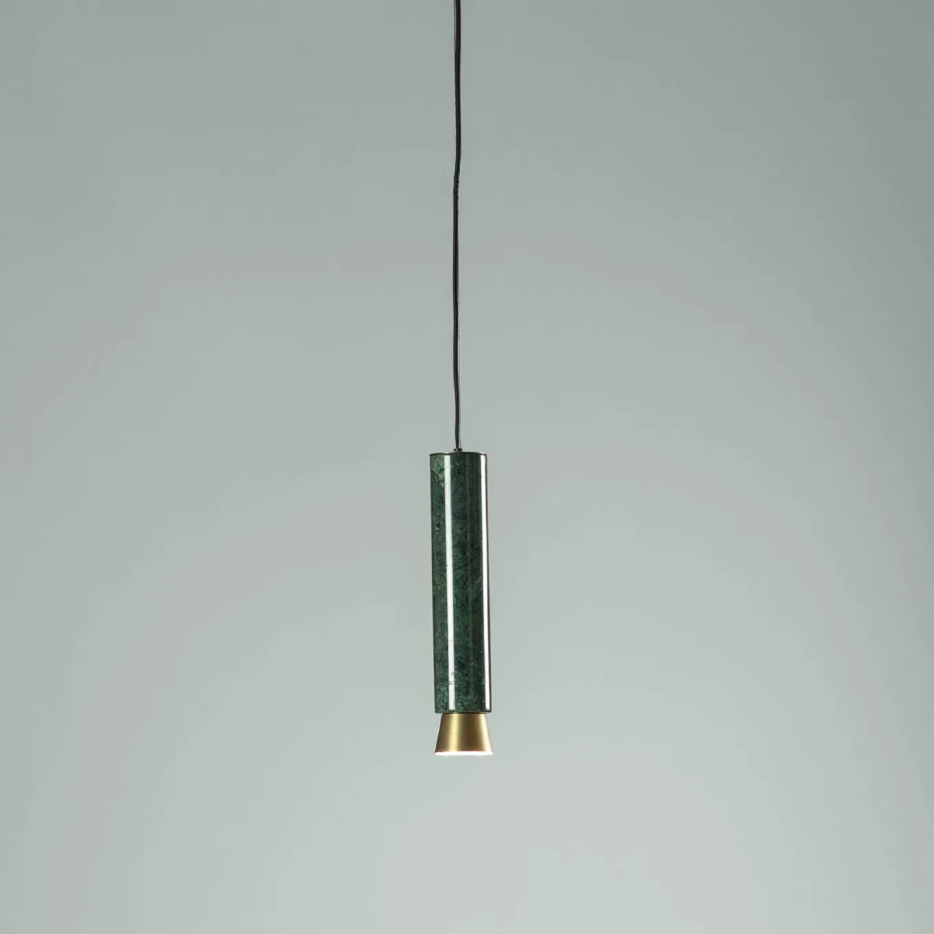 The Agua Suspension Lamp is perfect for a soft light if used alone, or to fully illuminate a room if combined with other lamps. The structure is made of bronzed brass, while the body is realized in green Guatemala marble.