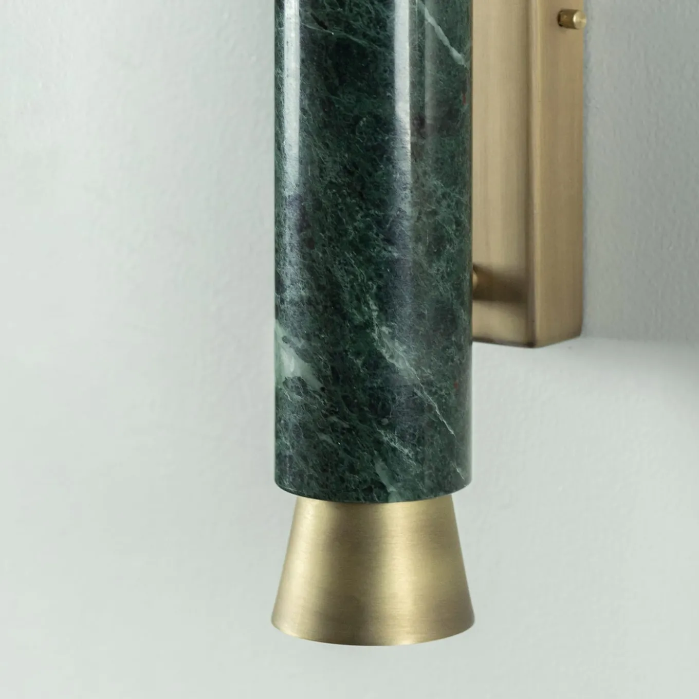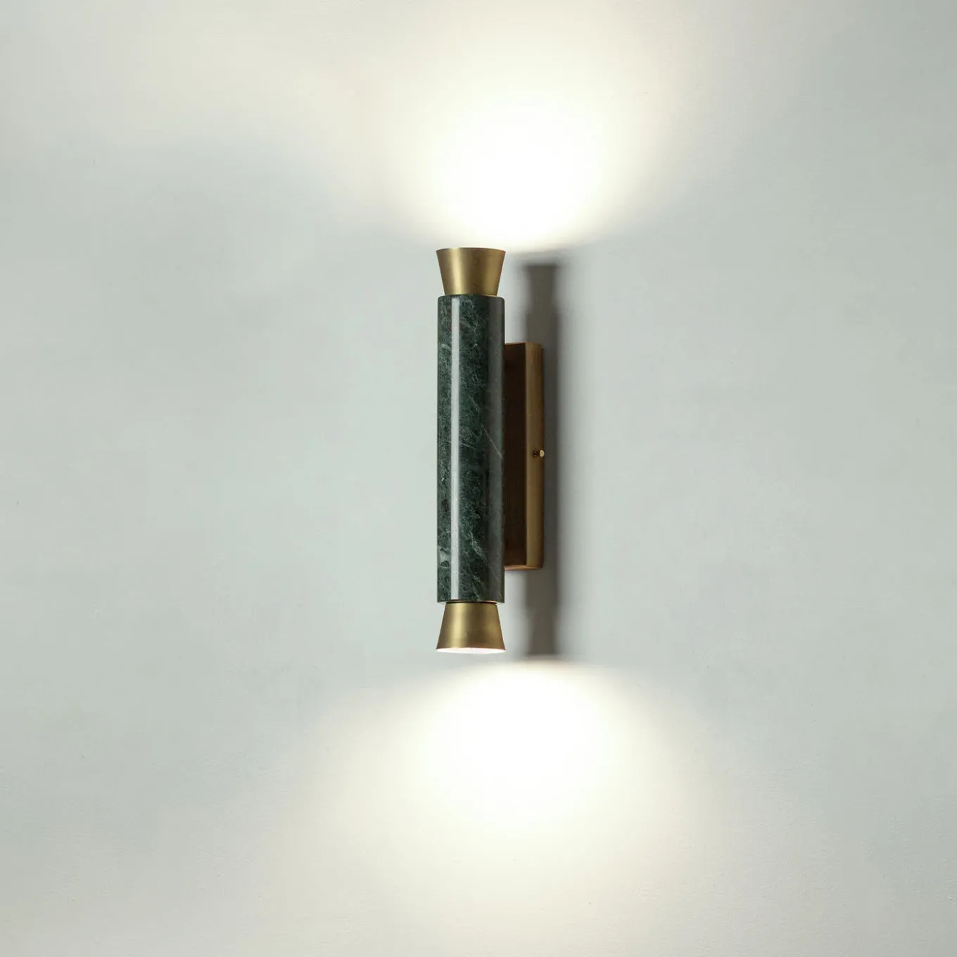 The structure of the Agua Wall lamp is made of bronzed brass, while the body is entirely made of green Guatemala marble. A very elegant lamp perfect to illuminate and give a particular touch to a classic interior design. The Agua Wall Lamp measures 8 x 8 x 38cm.