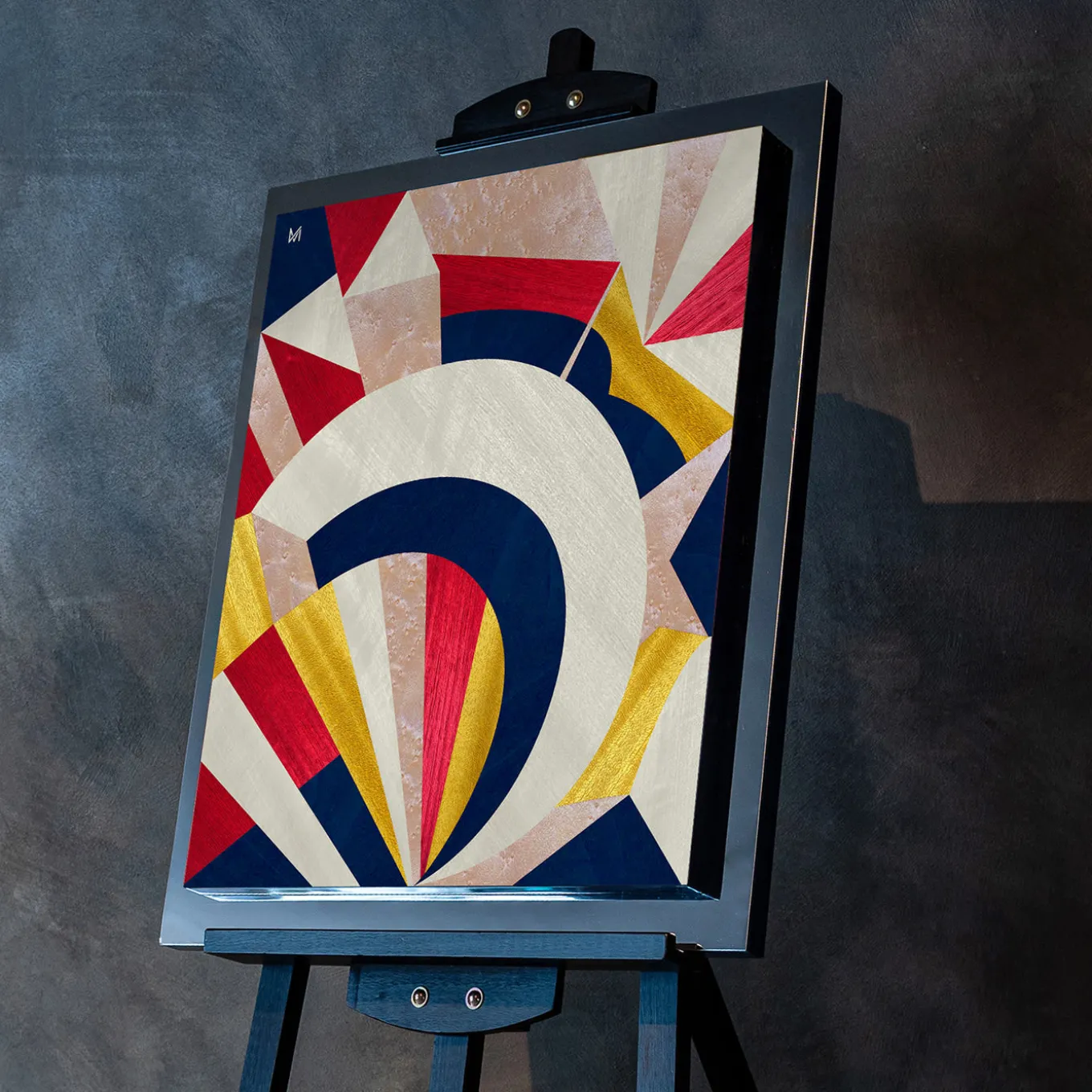 A dynamic geometric design appears to burst from this stunning wood inlay panel, flaunting chromatic effects of blue, yellow, fuchsia, and white. Created by StoryArtist Marzia Boaglio, for the St. Valentine’s edition of her Prima Storia Collection, it narrates the charming tale of a couple’s journey through pregnancy. Alba (Dawn) features the birth of a new day and of a new life, when two become three. Embellished with mirror-finished steel, it will enliven a refined contemporary interior.