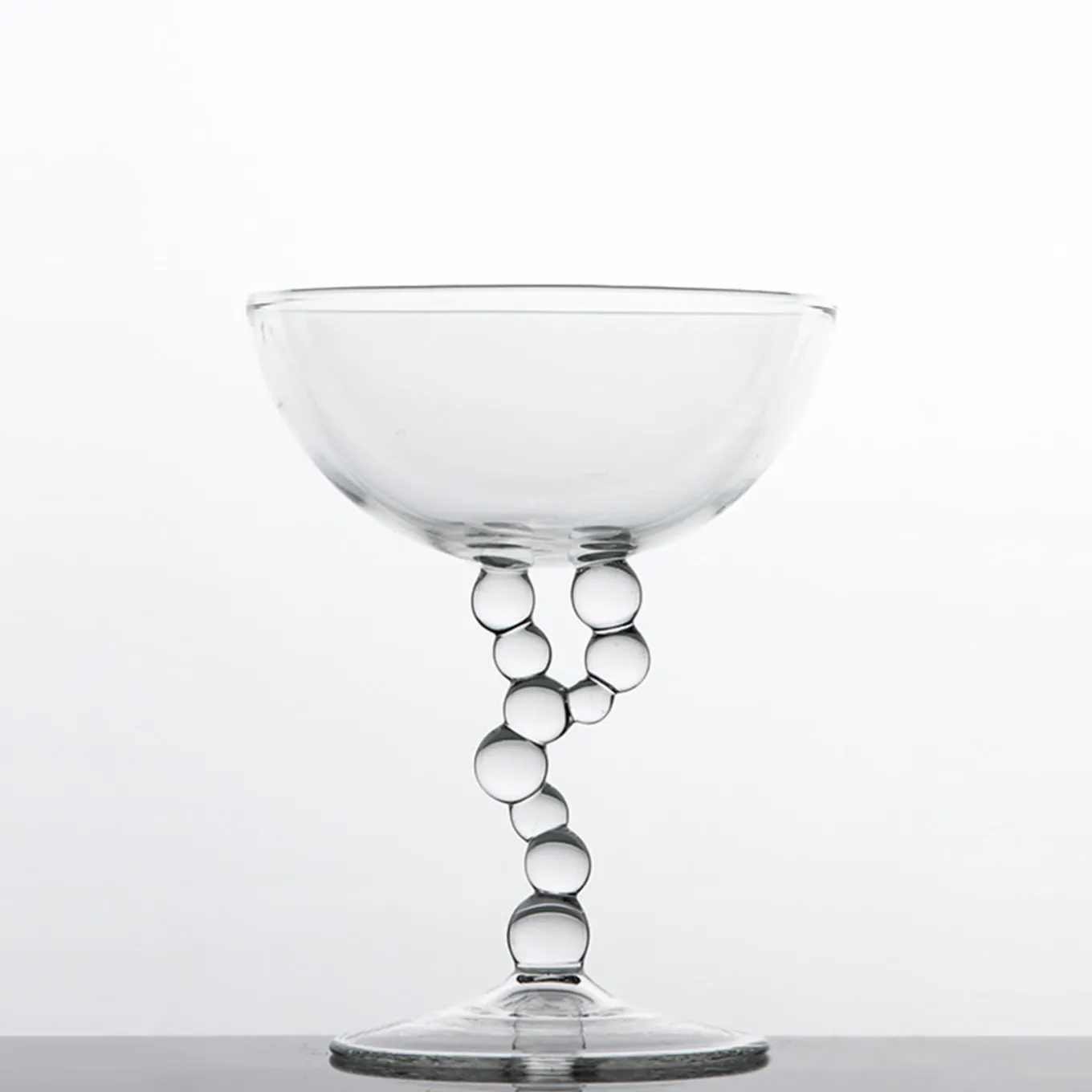 A collection composed of bottles, wine glasses, cocktail glasses and whiskey glasses, born from an ironic reinterpretation of chemical laboratory glassware. Vials, test tubes, funnels, and cylinders are