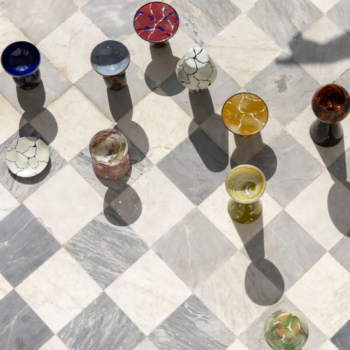 The Alchimie Murano Glass Black Emperador Vase is a standout piece from the collaboration between Incalmi and Debonademeo. This vase exemplifies the innovative use of glass powder, transforming it into a sophisticated design. The interplay of black hues, along with textures that mimic marble and semi-precious stones, highlights the evolving potential of Murano glass and metal. This piece combines traditional craftsmanship with a modern aesthetic.