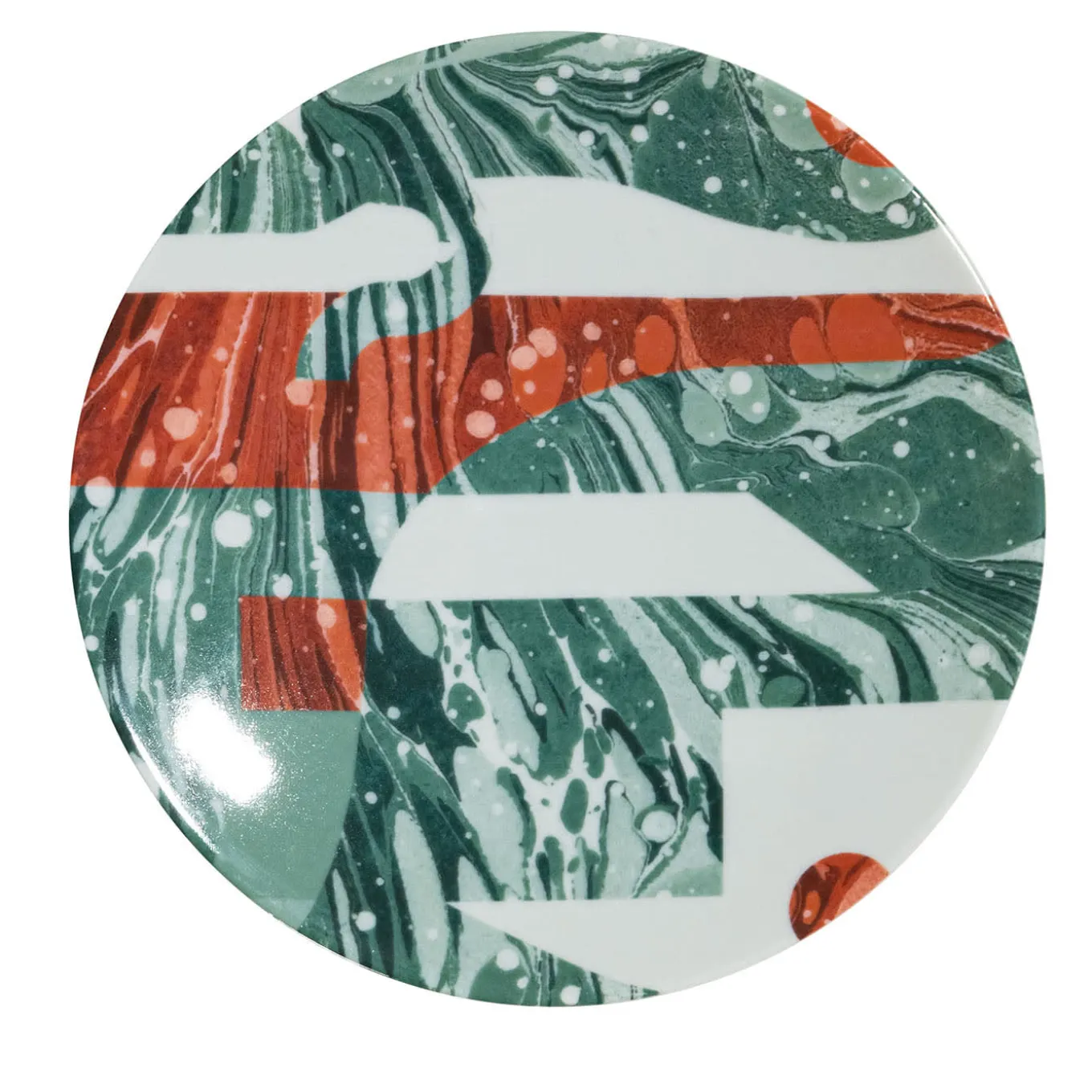 Vito Nesta and Alessandro Guerriero have created the Alchimie collection for the Grand Tour brand. This collection immortalizes many products influenced by the founder of the 1976 Alchimia studio. Vibrant colors, strong contrasts, and geometric and abstract shapes interlock, creating small universes of visual beauty. Different textures enhance the flat-color designs, making them more eye-catching and fun. This bread plate is one of six that make up the collection.