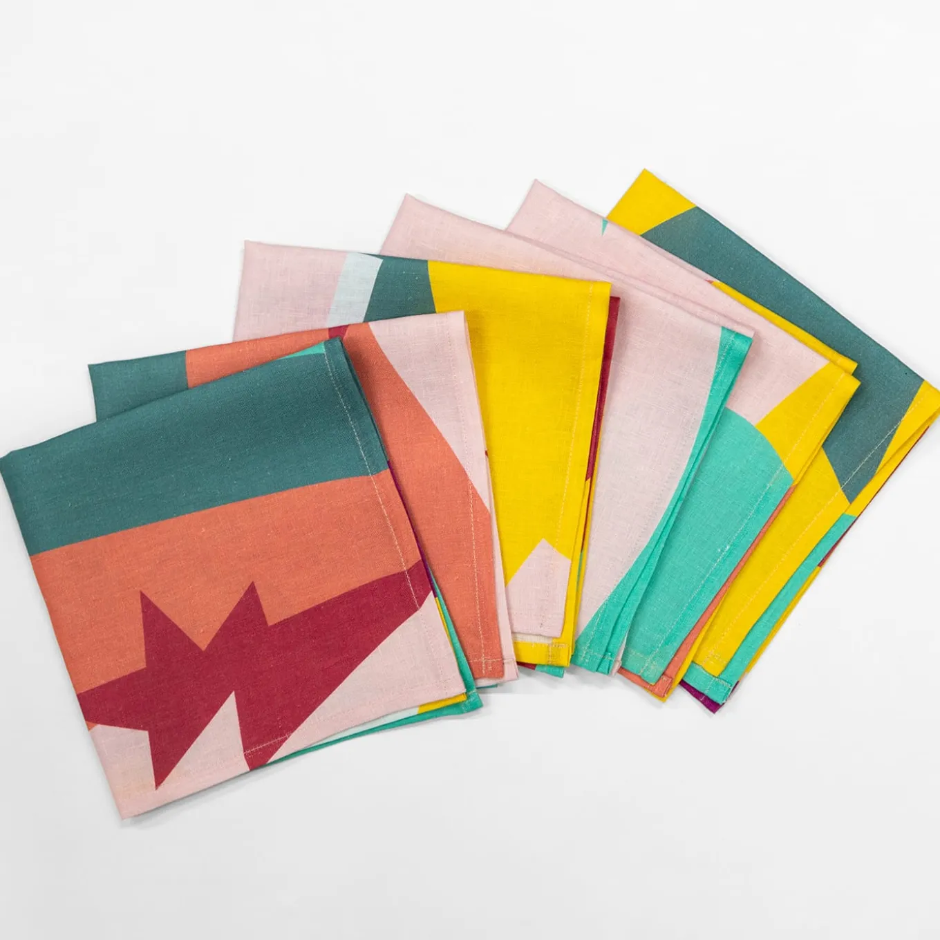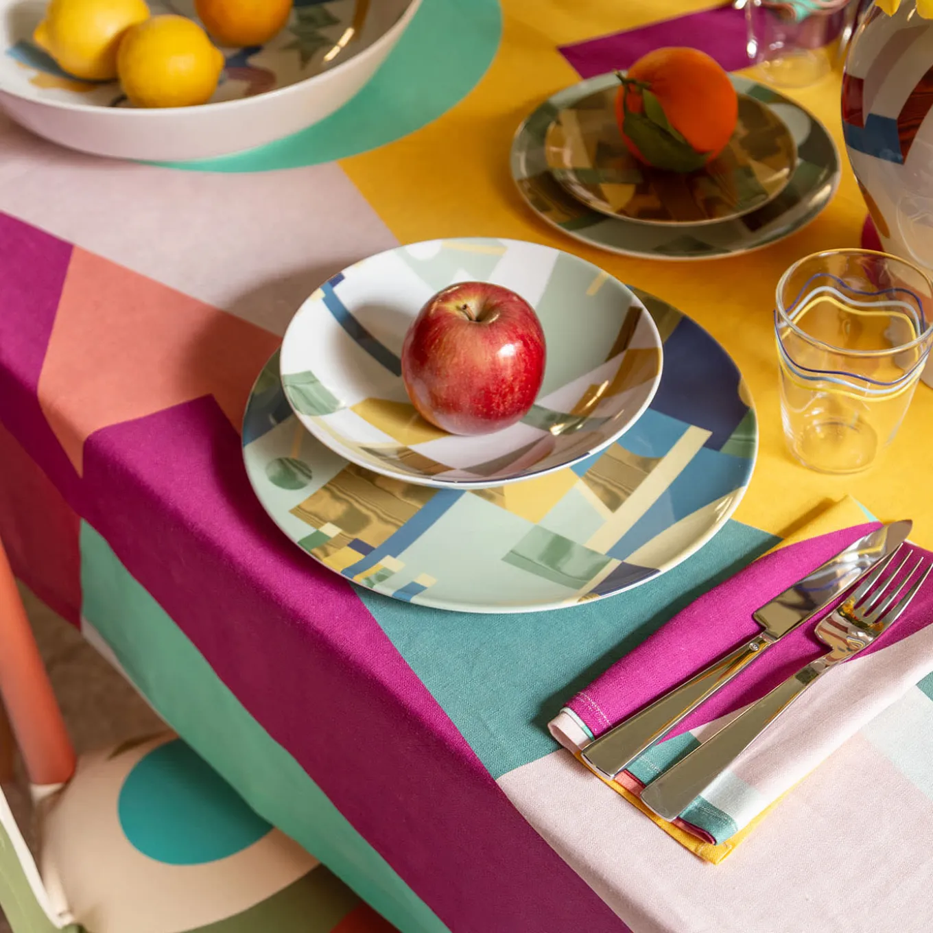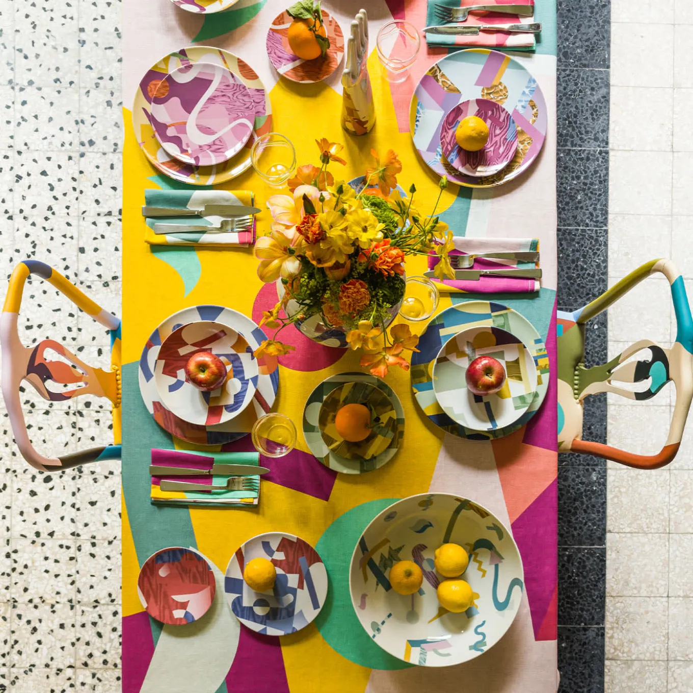 Vito Nesta and Alessandro Guerriero have created the Alchimie collection for the Grand Tour brand, immortalizing products with influences from the 1976 Alchimia studio founder. Vibrant colors, strong contrasts, and geometric and abstract shapes interlock, forming small universes of visual beauty. Different textures enhance the flat-color designs, making them even more eye-catching. This set of 6 napkins, all different from each other, is perfect to accompany any table setting.