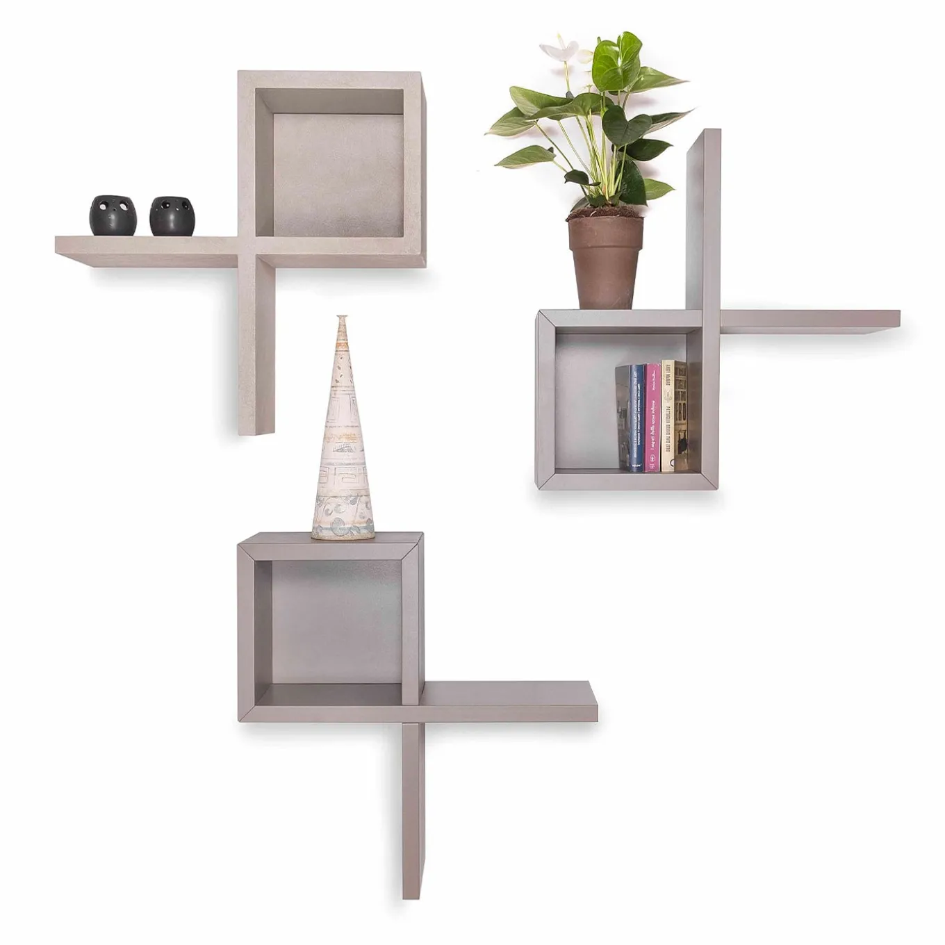 This elegant and minimalist modular design – obtained by assembling 3cm-thick MDF panels at 45° – is marked by a clean cross shape, also comprising a cubic storage unit for setting a series of books or ornamental plants. Finished with a textured effect, the frame is lacquered in a matte light-brown hue allowing the design to effortlessly blend in any palette. Freely anchored to walls with retractable hooks, it comes in other colors to be discovered in the Artemest catalog.