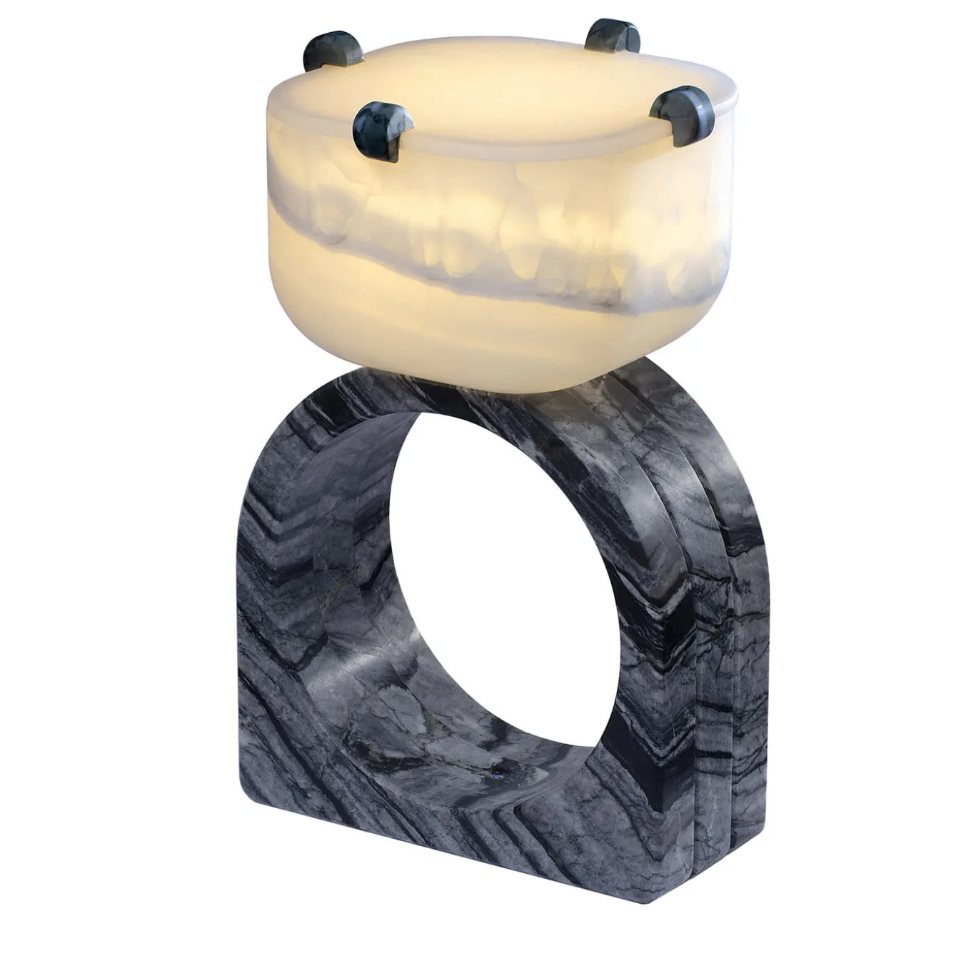 “Alice” is literally a homage to Lewis Carroll’s famous novel. Following the White Rabbit, the heroine enters an imaginary underground world made up of small conceits, surreal concepts and paradoxes, where she has the most unlikely misadventures. This distorted parallel universe is full of changes of scale, where the values of objects or characters are transformed. Alice table lamp’s variation in scale takes the form of a subtle reworking of the relationship between function, form, and material.