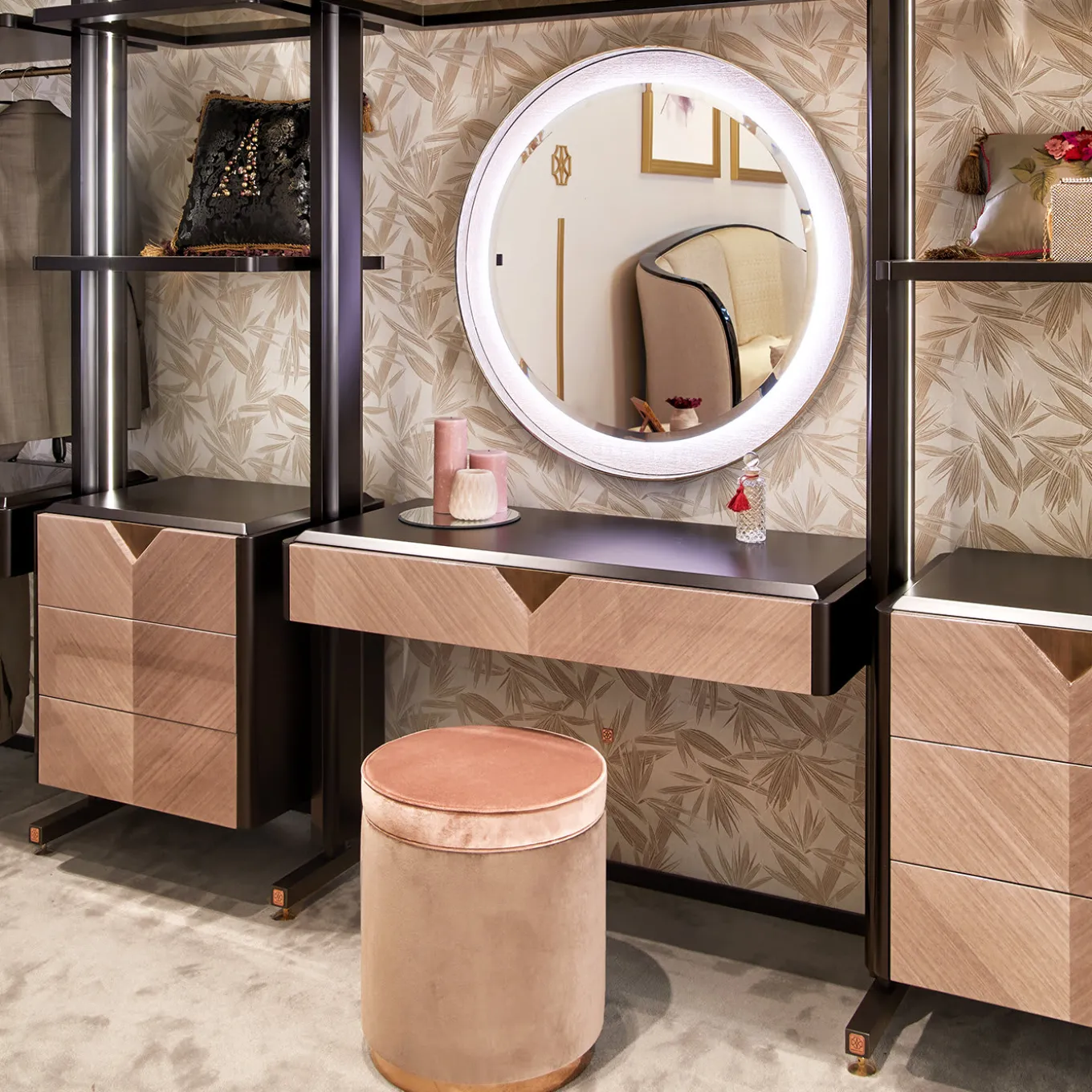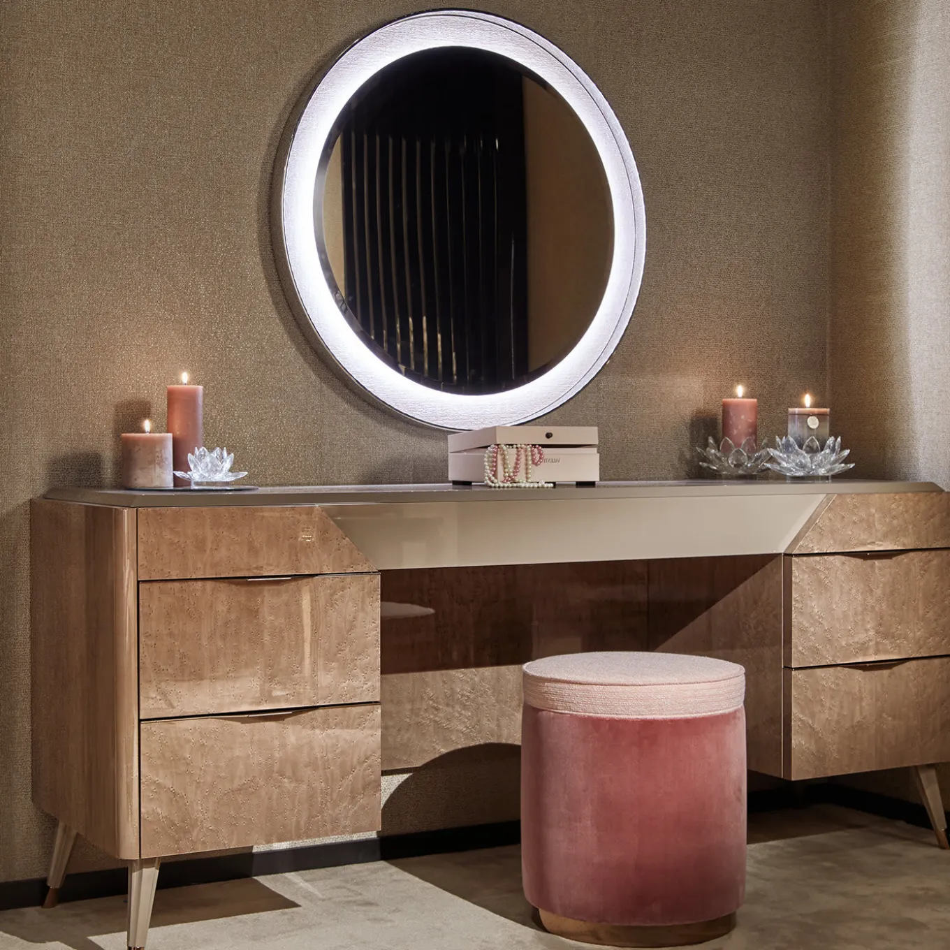 Add a rosy touch to a lounge space with the Alice Pouf. Shown here with a copper alloy base and pink velvet upholstery, the pouf is customizable to complement any lounge space, be it in a contemporary home or bar. A current must-have, the cylindrical pouf can act as seating, a footrest or a small accent table.