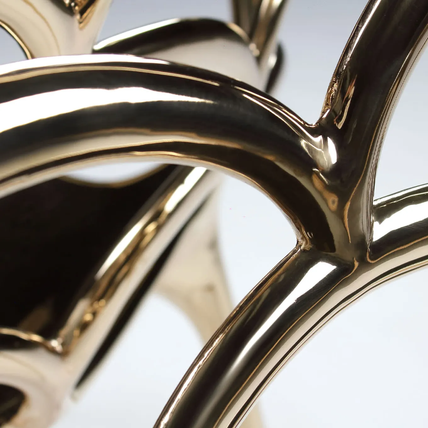 Exclusive sculptural chair made of cast bronze, in a very limited series of 12 pieces. Its construction is inspired by the majestic doors of the baptistery in Piazza del Duomo in Florence. The sinuous shapes interpenetrate as if they were of liquid metal, creating a beautifully fluid and reflective effect. The Alpemare chair has participated in important fairs: The Salon Art-Design (New York, 2019) and Art Miami (Miami, 2019). 100% handmade in Italy. Signed and numbered by the artists.