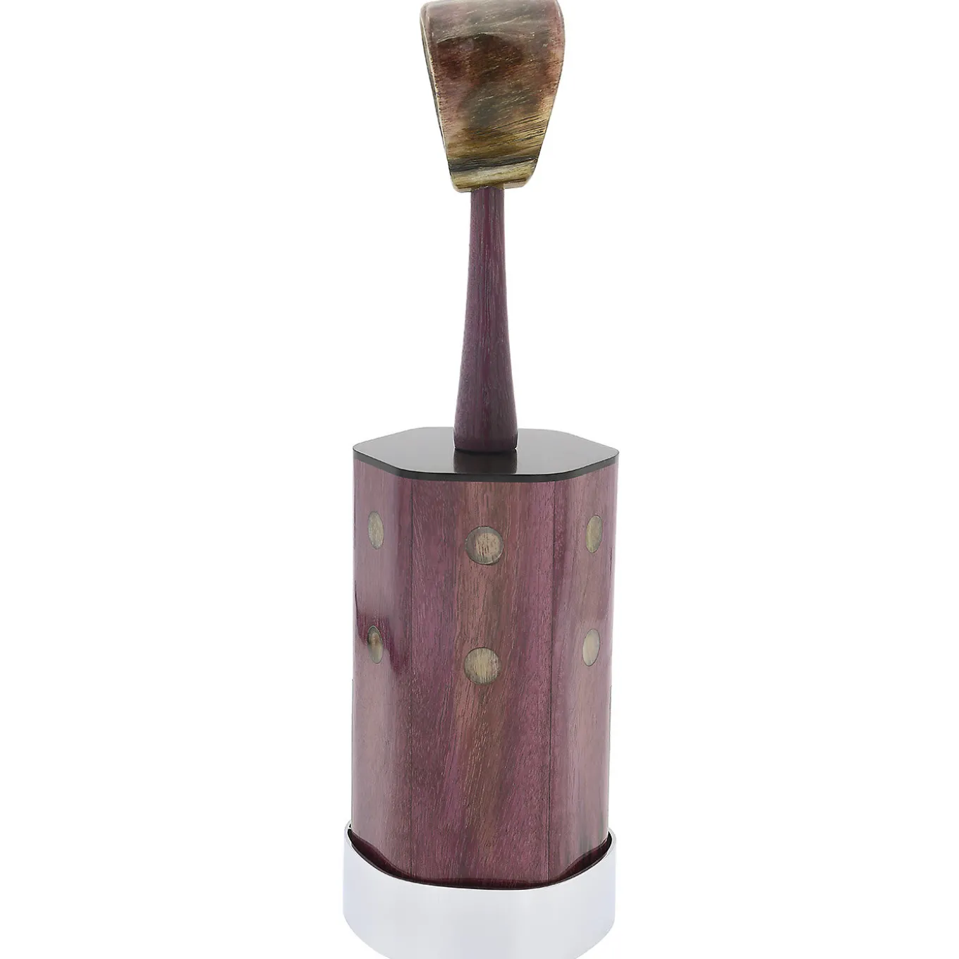 This magnetic knife block is crafted from amaranth and ebony wood. Its kudu horn handle matches the handles of the six forged steak knives, making the set a truly special addition to your kitchen. Complete with a knife locking system for safe transportation, the Amaranth and Ebony Knife Block is a must-have for serious chefs with a taste for sophistication.