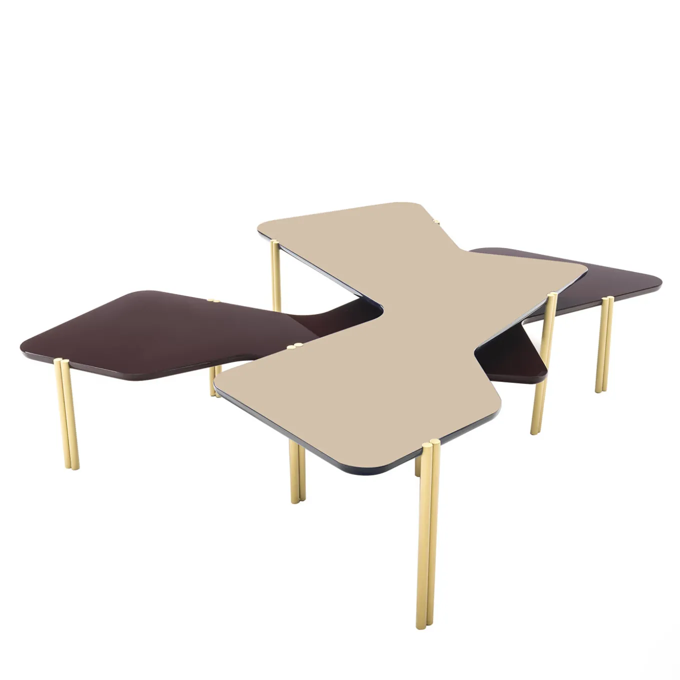 These asymmetrical tables are part of a curated selection presented at Artemest’ Living Objects Fuorisalone event during Milan Design Week 2019. Inspired by Dadaist artist Hans Arp’s abstract compositions, these tables feature irregularly shaped wooden tops with a lacquered finish in a refined color combination, crimson for the lower table and pink for the top. Each supported by five double-cylinder brass legs, they can be stacked together as a captivating coffee table or displayed separately to add a visually alluring aesthetic and distinctive touch to a modern living room or office decor.