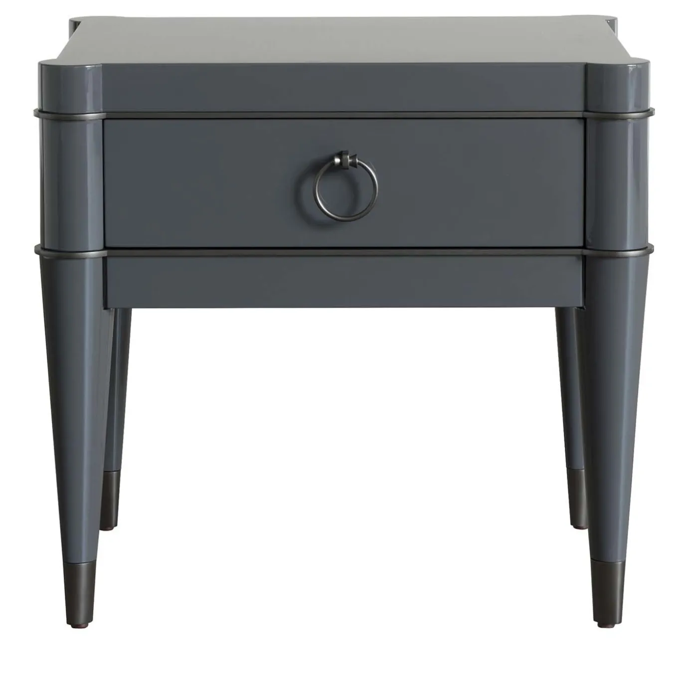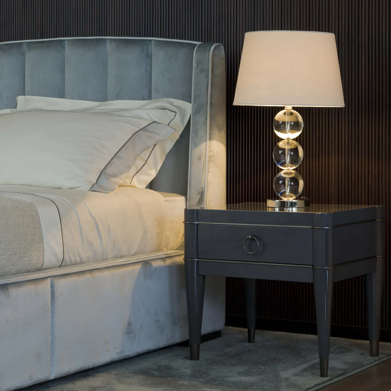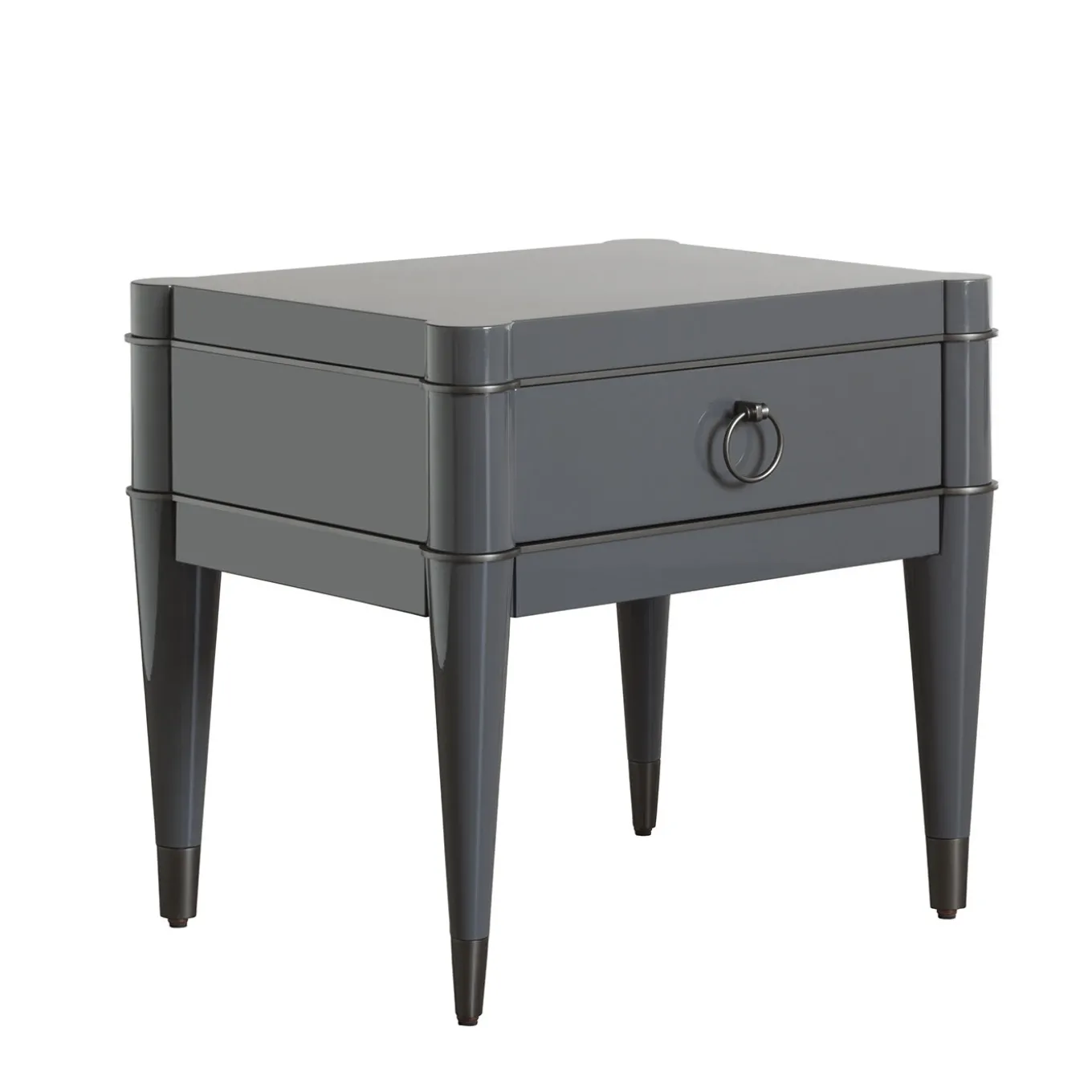 A charming addition to a bed frame, this nightstand is an exquisite presence in a classic home, thanks to its expert craftsmanship, high quality materials, and stunning details. The solid wood structure of this piece is adorned at the feet, around the perimeter, and in the handle of the front drawer with metal with a bronze finish. The top and front boast a lacquered finish, while the drawer, equipped with Bluemotion guides, has a back lined in faux-leather. The metal inserts are also available in satin-finished brass.
