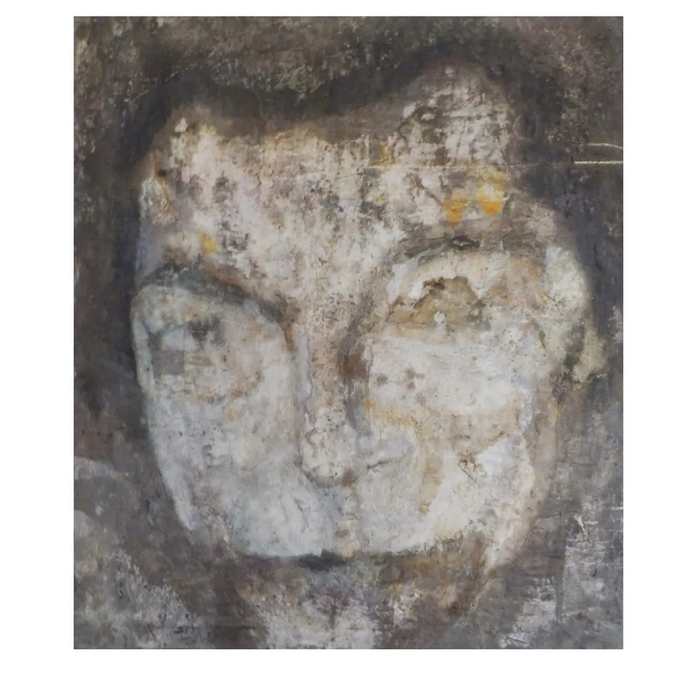 An extraordinary portrait, a signature artwork among Giusto Pilan’s repertoire, this painting embodies the artist’s philosophy and research, which focus on recovering a lost memory that originated in the birth of mankind and the first cave graffiti. A unique contemporary work, it is handmade with a unique technique based on marble dust, wax, and pigments, penetrating into the canvas with a particular firing procedure.