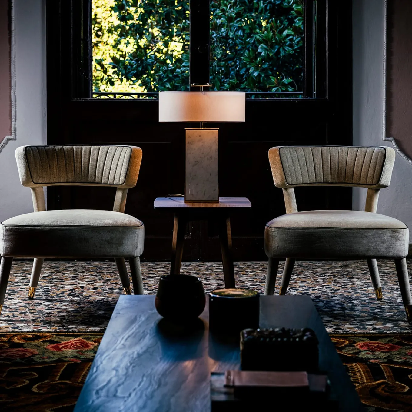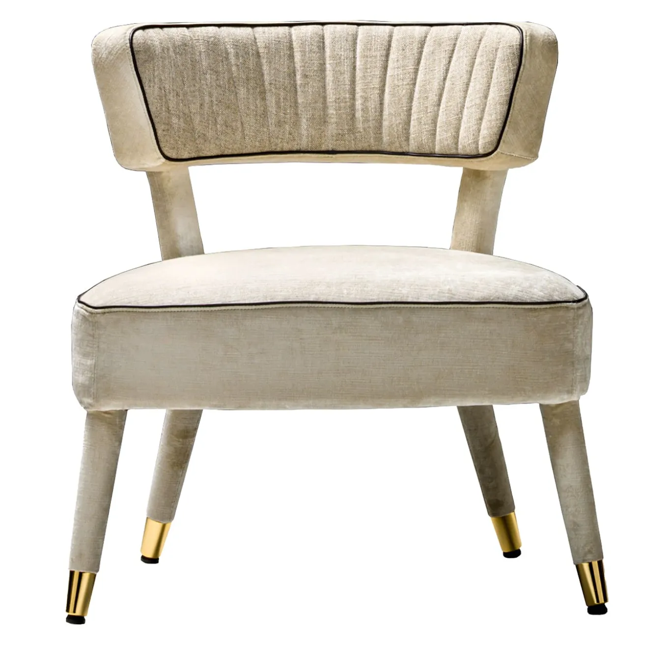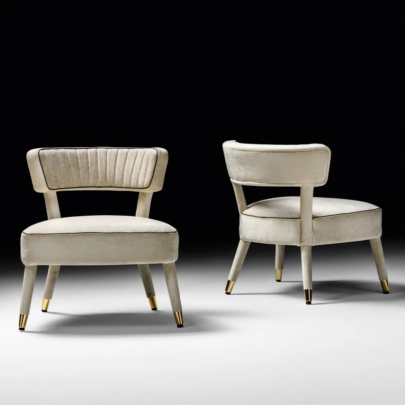 Simple yet bold, the modern silhouette of this remarkable armchair features a generous seat and a rounded, open backrest upholstered with expanded polyurethane with a non-removable cover in a striking white pattern. The upholstered, cylindrical legs are slightly tapered and are accented with gold-plated metal ferules. A perfect combination of comfort and elegance, this armchair will make an eye-catching addition to a modern study or living room decor. Contract and commercial certifications available upon request.
