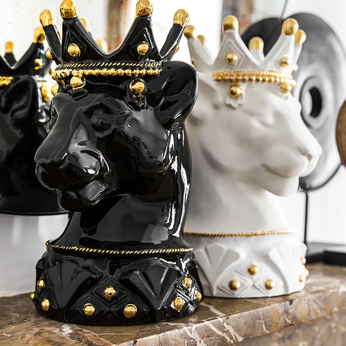 Meticulously crafted from ceramic, this vase showcases a striking depiction of a majestic white puma. It evokes rich Sicilian history, blending the island’s tradition with the untamed beauty of nature in an ode to ancient legends. Thanks to the skilled hands of artisans, the moors are transformed into heads of magnificent beasts, celebrating Sicily’s wild and captivating essence. Designed to hold fresh flowers, this animal-themed vase adds a touch of untamed elegance to any space.