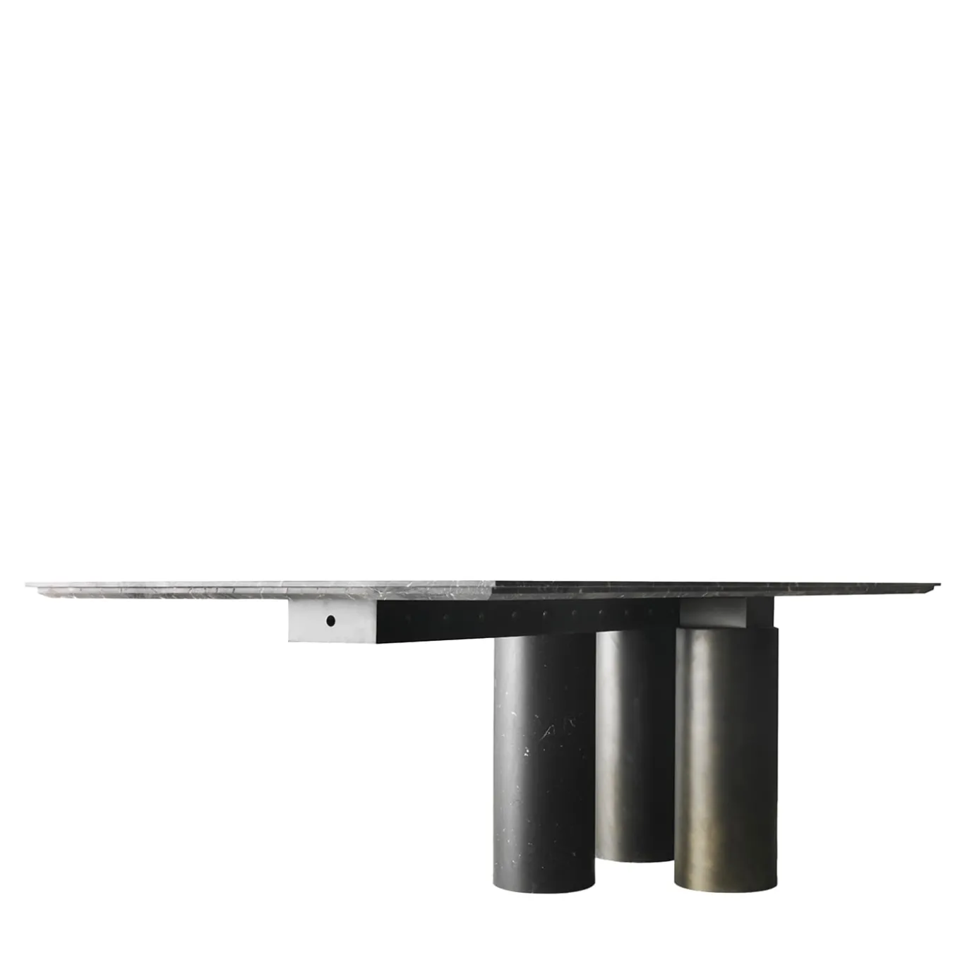 Marked by classic rigor and contemporary aesthetic, this dining table belongs to an exclusive collection boasting round or rectangular tops. Supported with cylindrical marble legs that counterbalance the lengthy top, also made of marble but available in a wooden version upon request, its structuring is reminiscent of that of a bridge. Please consult the Concierge for size and marble-type customization options.