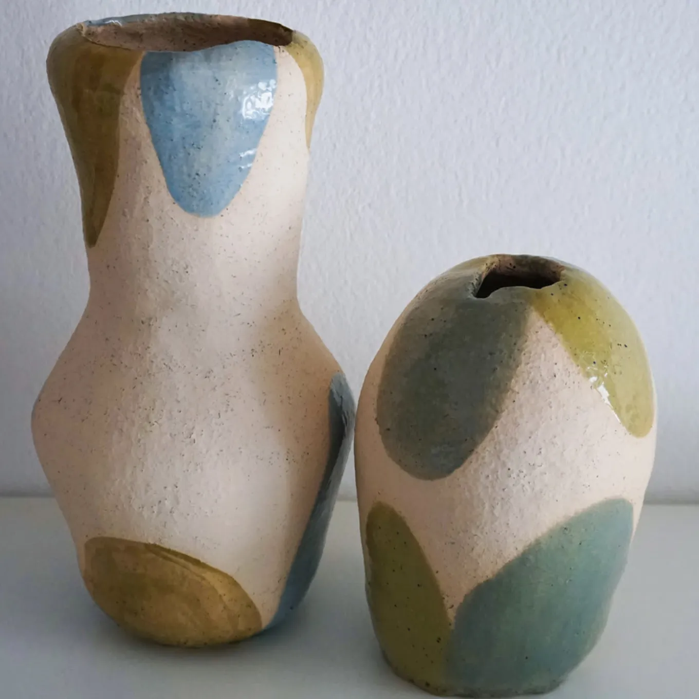 This charming vase is entirely handmade and handpainted by artist Cristina Cavallari in her small potter’s workshop in Italy. Made using the slab building technique, the tall silhouette boasts a rounded bottom that tapers to an elongated neck and wide mouth. Earth-hued accents are painted on in circular or oval patches on it’s plush volumes, revealing the intriguing inspiration behind the collection (“”arlecchino”” meaning “”harlequin””). Each piece is unique, and due to handcrafting, slight changes may occur.