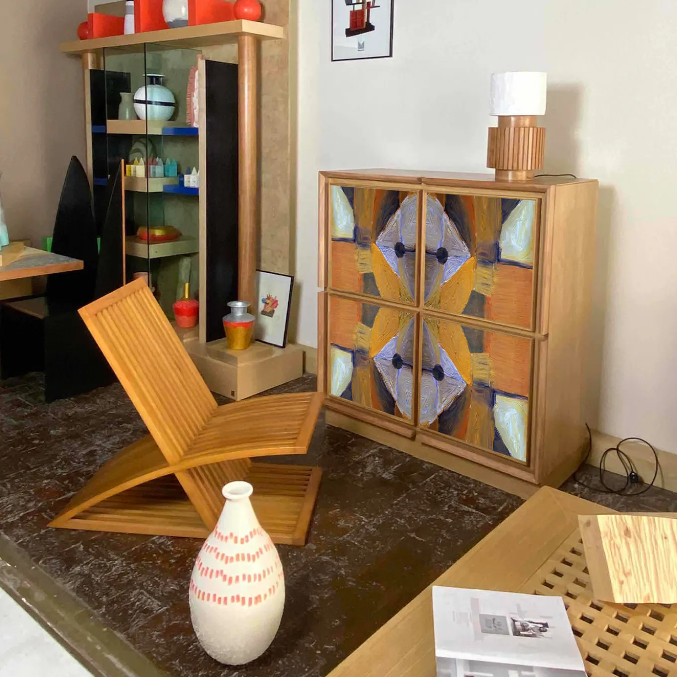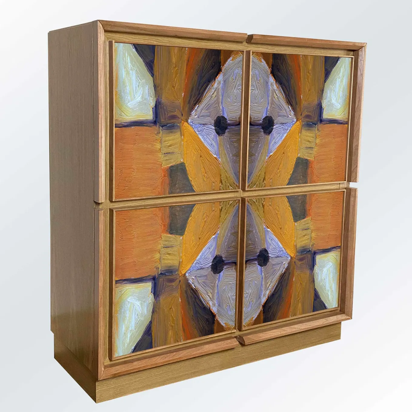 A one-off piece from the limited edition of 10 designs created by Mascia Meccani in 2022, this cabinet will make an iconic addition to a contemporary interior space. Painted by hand in a stunning abstract design inspired by Ferdinando Meccani’s oil paintings from the ’60s and ’70s, it embodies the encounter between artisan and artist. Handcrafted of cherry and walnut-finished durmast, it is customizable in size and wood essence upon choice, please contact the Concierge for details.