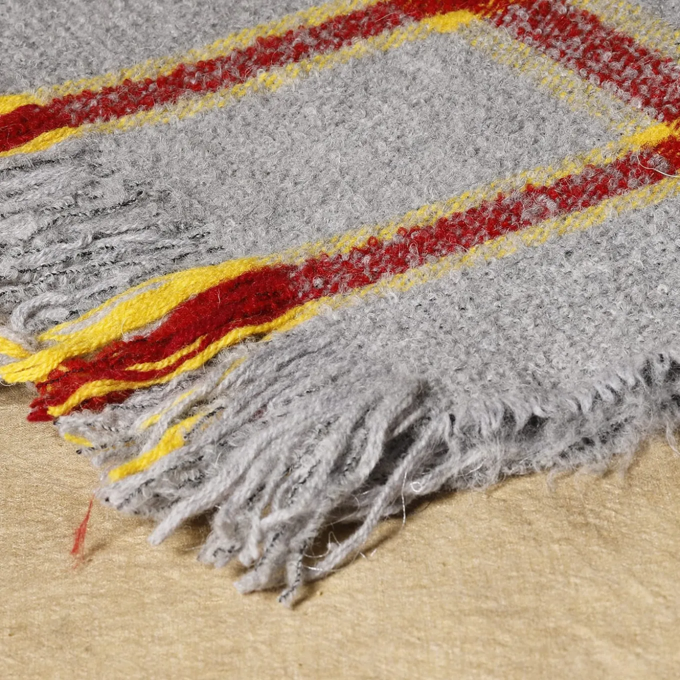 On the gritty grey background of a city wall, the light that filters through a window projects the grid of a grate, creating the look of Atmosfera, a wool and alpaca blanket.