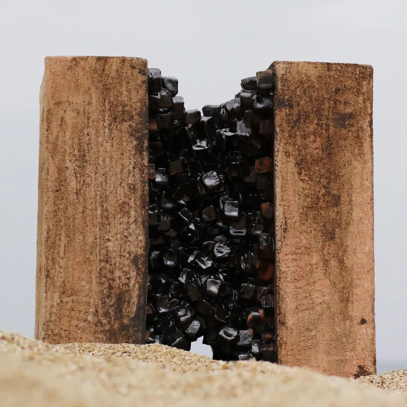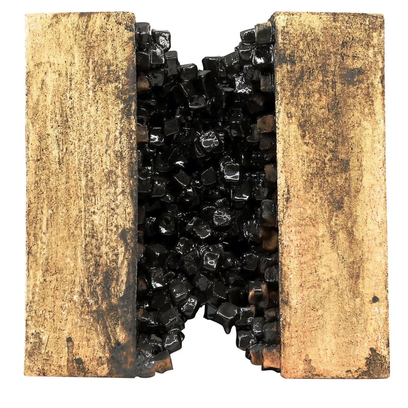 A stupendous artwork of timeless value, this sculpture is a one-of-a-kind design to complement a contemporary interior setting of refined character. Inspired by the clean geometry of a cube, it explores the idea of explosion and implosion, of a revolution of the Self. Handmade of stoneware, it features small cubes on the inside, colored in a metallic shade. Please consult the concierge for further details.