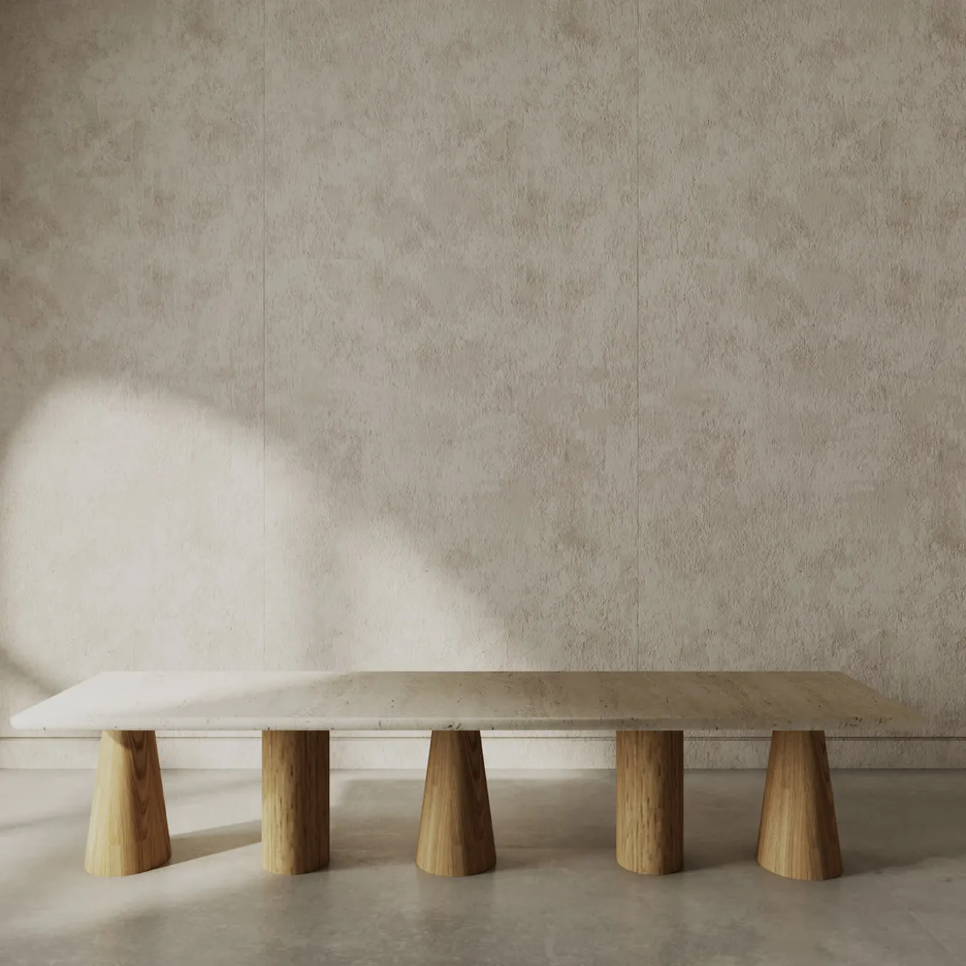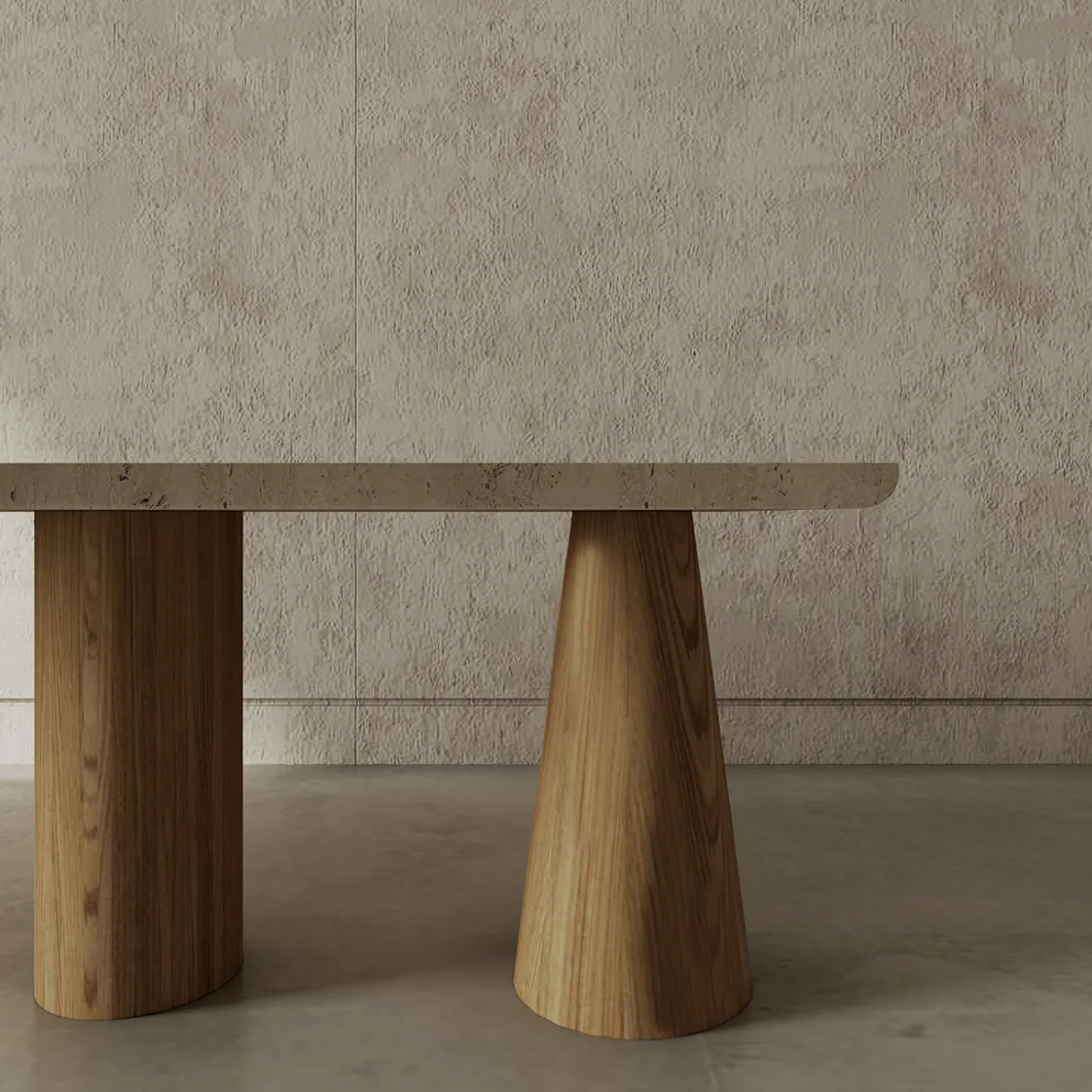 The Atrani Bench is a sophisticated design piece that beautifully marries the warm essence of solid oak with the timeless elegance of natural travertine. Its minimalist and sculptural style positions it as an exclusive furniture element, ideal for modern and refined environments. Inspired by the charming village of Atrani on the Amalfi Coast, this bench features a sturdy base crafted from solid oak, characterized by balanced conical shapes that provide stable and harmonious support for the travertine top. The Atrani Bench stands as a symbol of craftsmanship and enduring design, merging functionality with aesthetic grace.