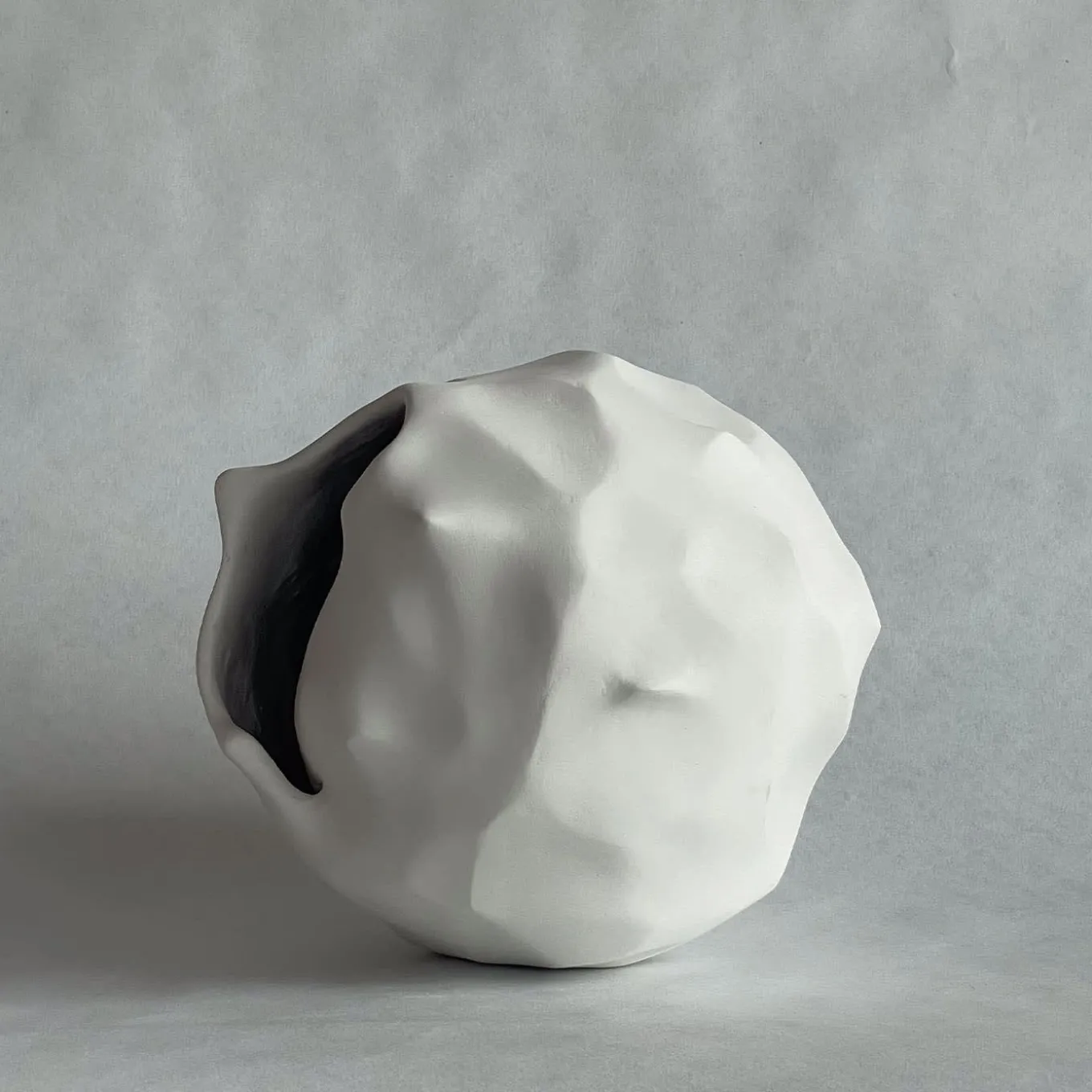 In Attimo, Silvia Garau captures the essence of a fleeting moment with its irregular opening and flowing contours. The deep shadows contrast with the smooth, layered white surface, finished with fine abrasives to create a tactile, mineral-like texture. As part of her signature process, the sculpture began as raw clay, shaped to evoke a sense of movement and time. Inspired by Rome’s timeless beauty, Attimo represents the delicate balance between transience and eternity.