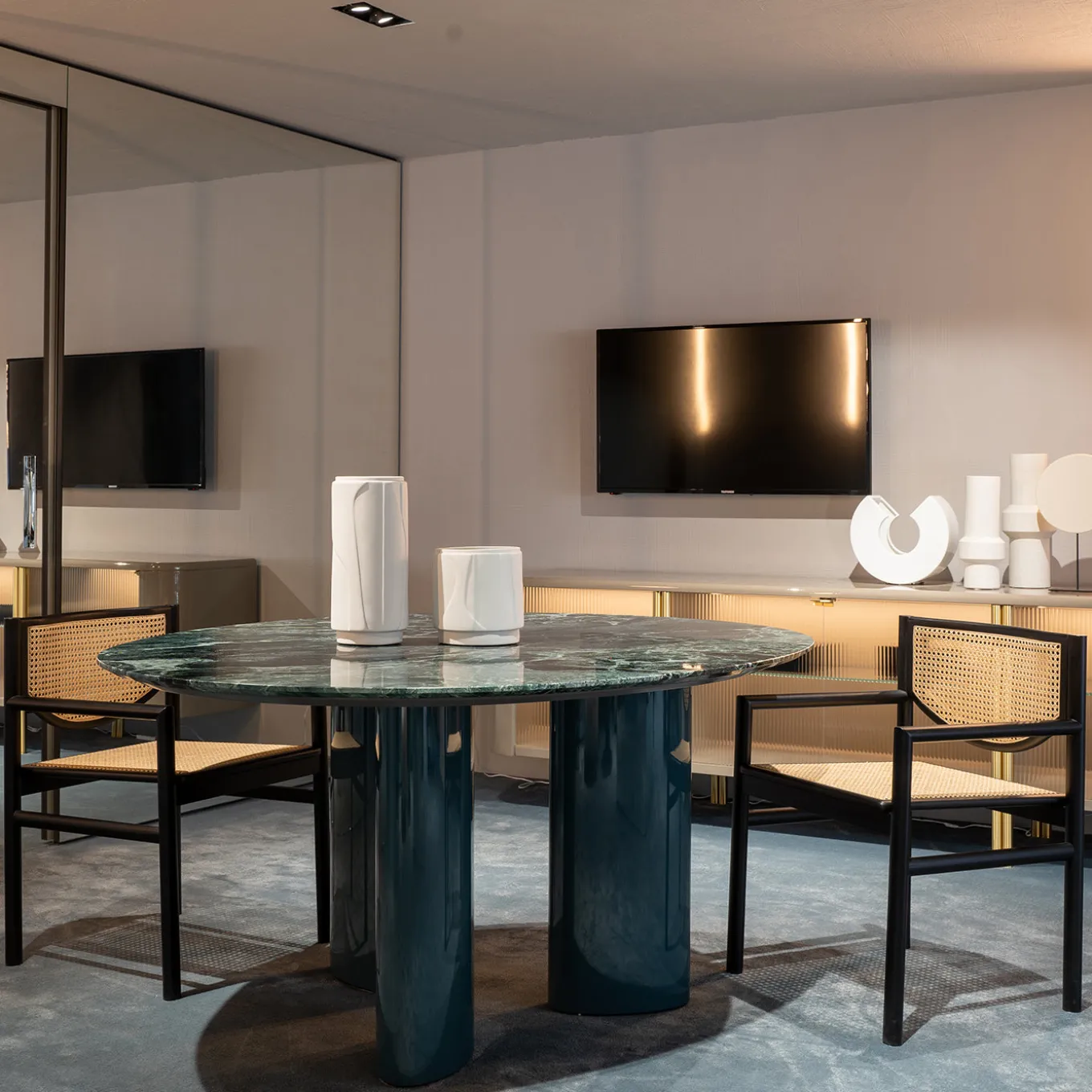 This milk colored vase is characterized by the movement of sinuous lines opposed to straight lines, in a continuous bas-relief with games of different surfaces. It is inspired by Aura, a poetic wind, a light breeze that regenerates, like a sweet caress.