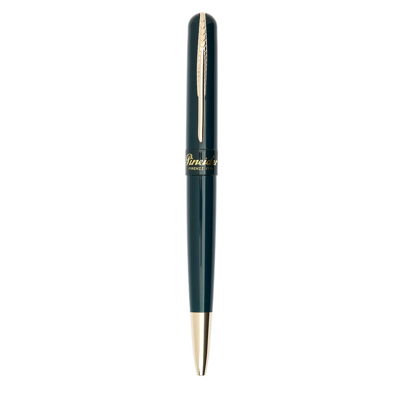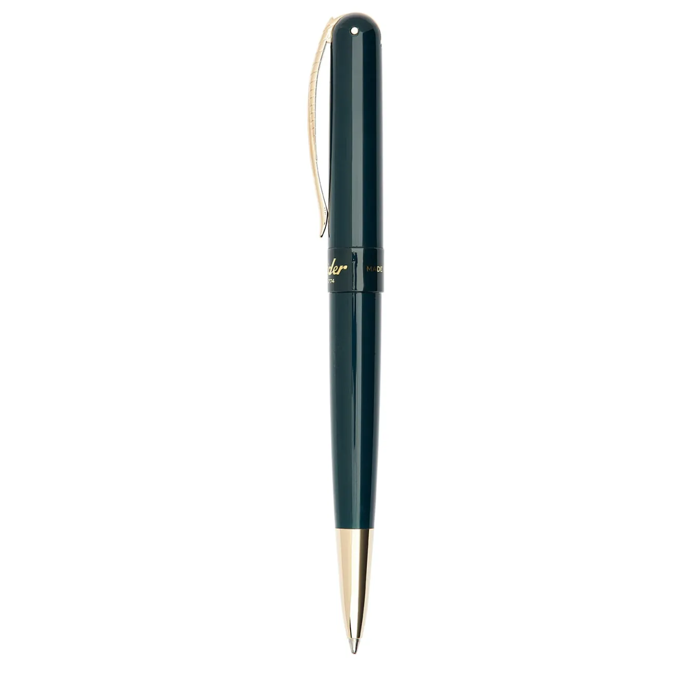 The deep green body of this ballpoint pen, accented with radiant gold trim, exudes timeless sophistication. Its rich hue, reminiscent of lush forests, is enhanced by a glossy finish that catches the light beautifully. The finely engraved gold clip adds a refined detail, perfect for securely sliding into pockets or notebooks. Compact and durable, it combines smooth, precise writing with elegance, making it ideal for professionals who value a bold yet classic statement piece.