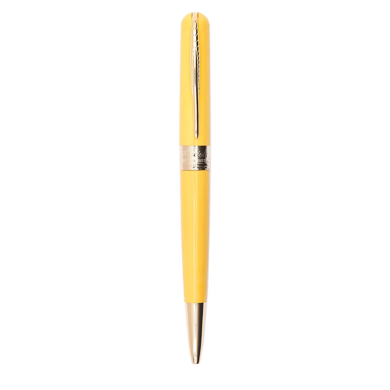 This vibrant yellow ballpoint pen, accentuated by gleaming gold trim, radiates energy and optimism. Its bold, sunny hue is perfectly complemented by a smooth, lacquered surface that feels as good as it looks. The gold-plated clip and trim add a touch of refinement, enhancing its cheerful design. Reliable and lightweight, it’s perfect for brightening up meetings, journaling, or daily tasks. A statement piece that brings positivity to every stroke of the pen.