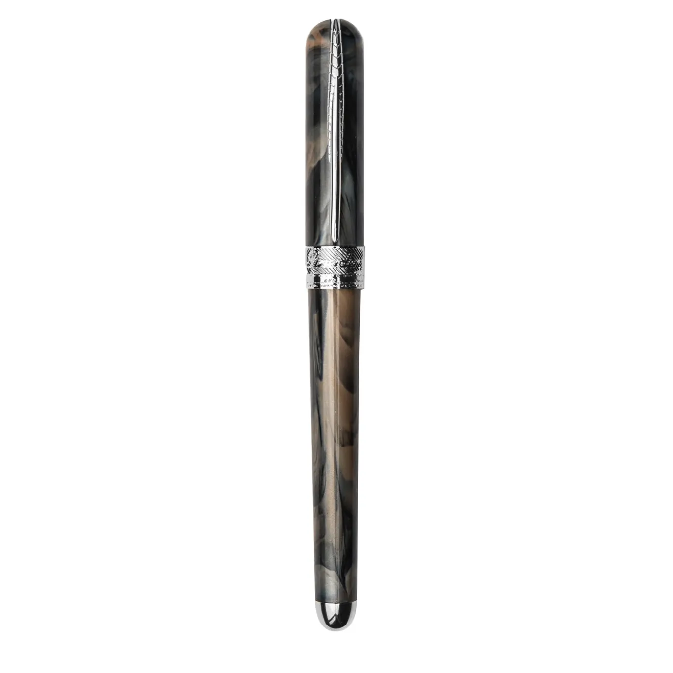 Fashioned of UltraResin – a material developed by Pineider mixing nacre and resin for optimized resistance – this fountain pen is crafted employing 3D engineering resulting in an interlocking system with no need for glues. The feather-shaped clip in marine steel and the soft-close cap lock are displayed alongside details in palladium 0.2 and a central band finished with a minutely engraved skyline of Florence. Please contact the Concierge for information on colors, type of filling (cartridge or converter), and N°6 steel nib sizes available.