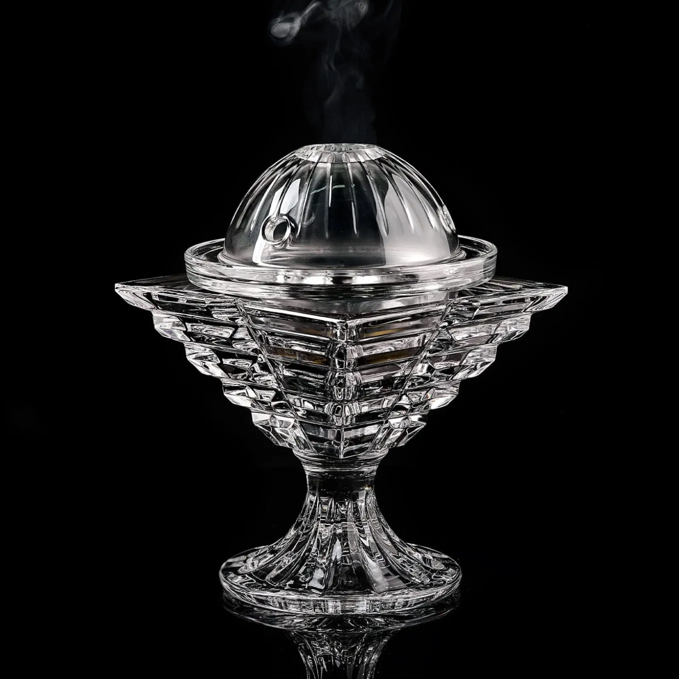 Incense has been enjoyed in the world to meditate or to create pleasant environment atmospheres. The concept of Mario Cioni was to bring this moment into a more aesthetic and celebrative form. This crystal incense burner is completely mouth-blown and hand-cut.