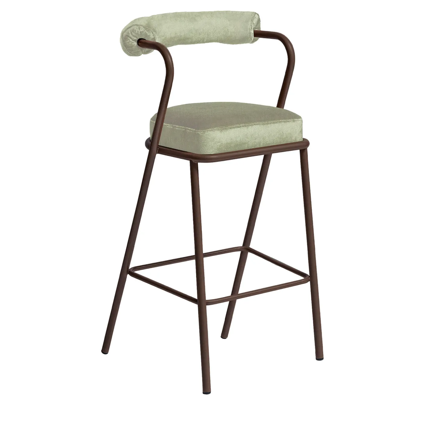 Baba Brown Steel & White Cream Velvet Cushion Bar Stool by Serena Confalonieri