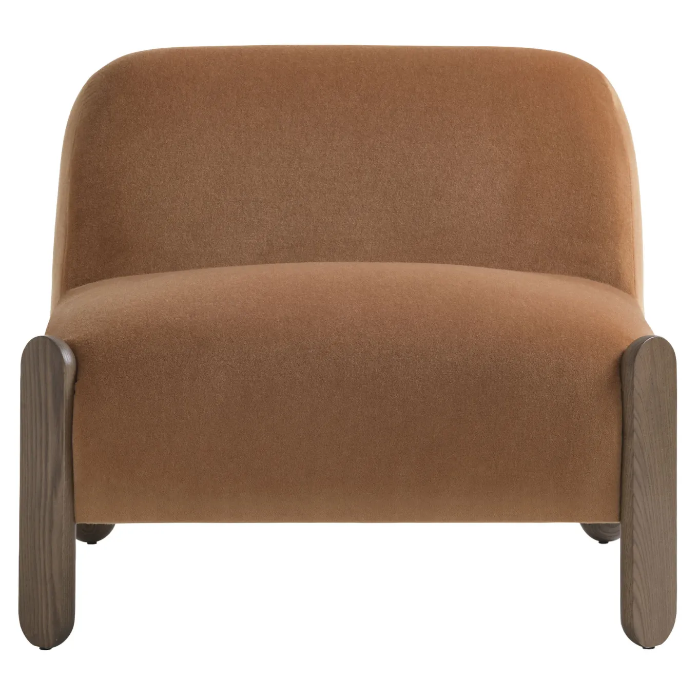 The Babà Soft 875 Lounge Chair by Emilio Nanni features a generous, full volume seating with gently curved lines that evoke elegant simplicity. Its distinctive tobacco-tinted ash wood frame complements the soft upholstery, offering a versatile piece that can be configured in various arrangements to suit different spaces. The design combines a refined aesthetic with comfort, reflecting a tailored character through its artisanal craftsmanship and high-quality construction.