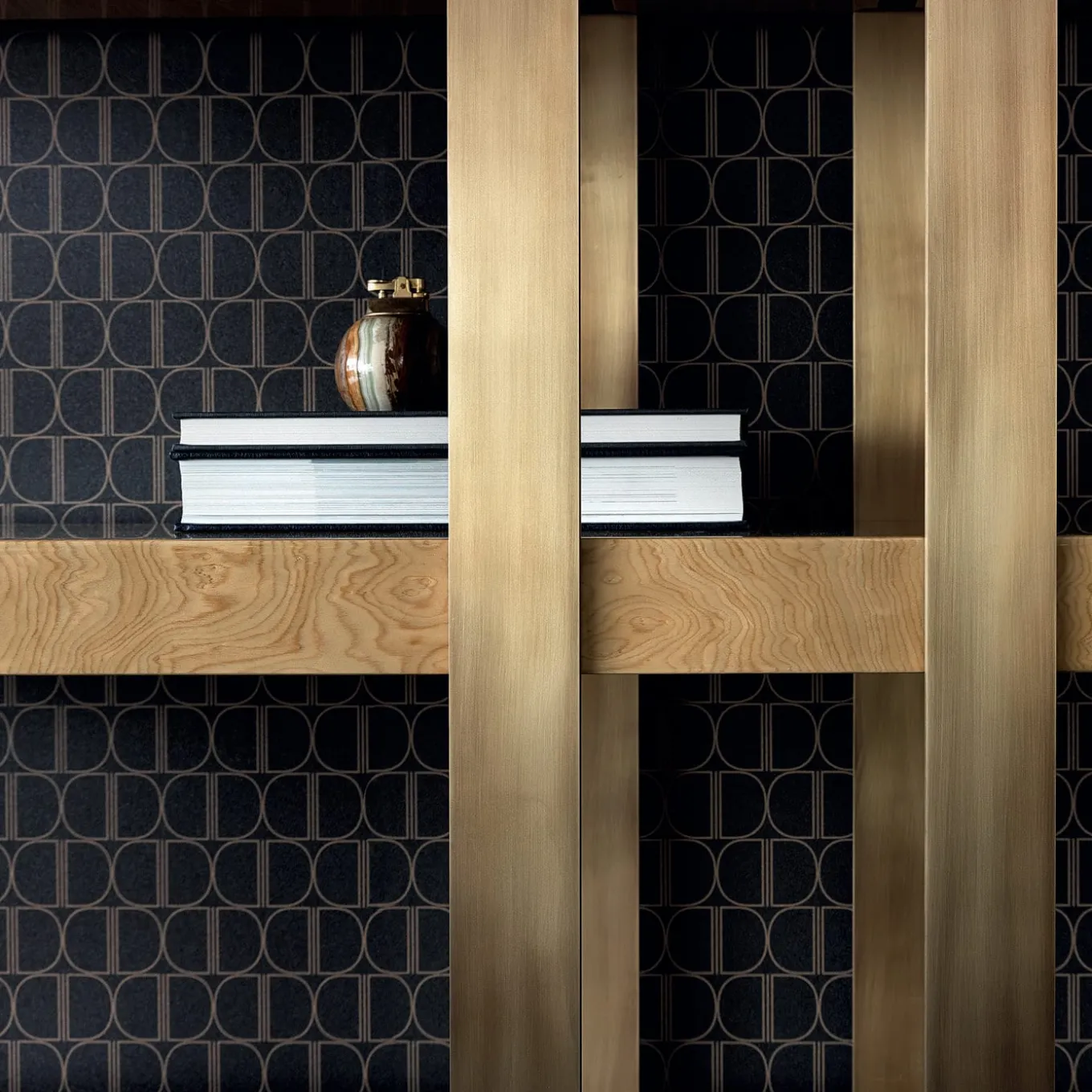 The Babel Bookshelf makes a striking statement with its hollow core shelves in a brushed gloss finish and a brass structure with burnished brass finish. Offering ample space for your precious books and ornaments, the shelves will compliment the decor in any contemporary style home. The photo features a gloss myrtle finish.