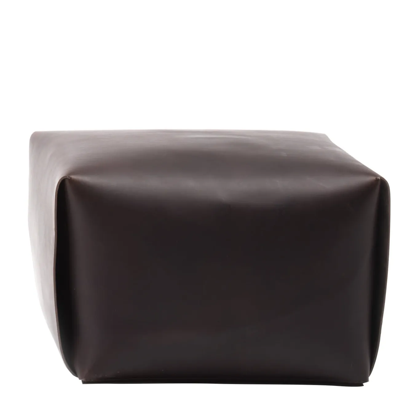 The Bao dark leather pouf is a refined bean bag chair, wrapped carefully in a single piece of soft, full-grain leather. Its folds resemble those of origami. The timeless, nostalgic shape is reminiscent of those old bedside tables from the ’50s.