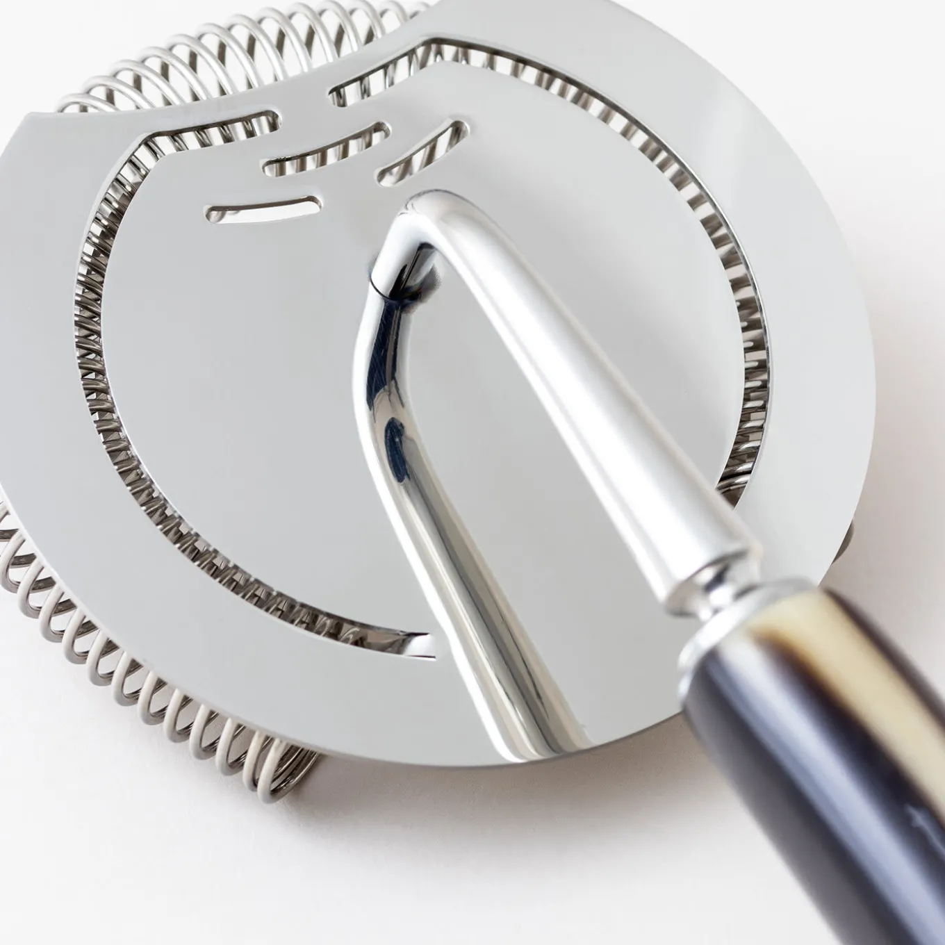 The Bar Strainer in Natural Horn exemplifies elegance and functionality. This stainless steel strainer features a meticulously handcrafted natural horn handle, offering both durability and style. The unique design ensures a perfect fit over cocktail shaker and mixing glasses, allowing for smooth and efficient straining. The contrasting materials add a sophisticated touch to any bar setup, making it an essential accessory for entertaining. Part of the Artemide Collection.