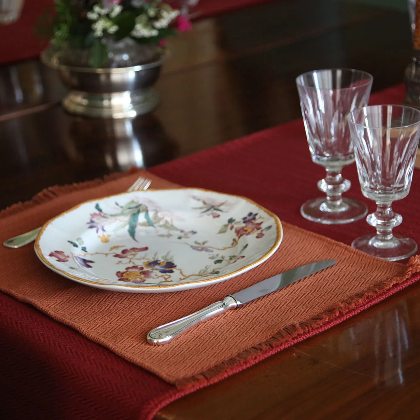 Crafted on wooden looms by the skilled artisans of Guri I Zi in Italy, this table runner is dedicated to crafting a sustainable and inclusive future for women. Warm color tones, the tactile quality of cotton thread, and the elegance of intricate weaving characterize this handcrafted item for interior decor and table settings. A constant motif adorns the surface of the table runner, while its deep red color makes it ideal for creating a striking contrast with dishes of opposing hues.
