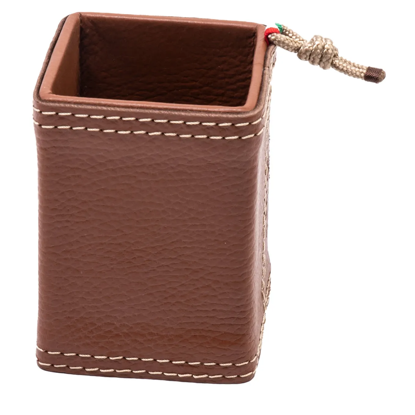 An elegant addition to desks in modern homes or private studies, this pen holder stands out for the pleasant beige eco-leather upholstery enveloping its parallelepiped-like aluminum shell. Finished with double contrast stitching, it flaunts a knotted rope loop at the top that reveals the brand’s nautical inspiration accentuated by an impeccable artisan tailored quality. Other color options are available, please consult the Artemest catalog for details.