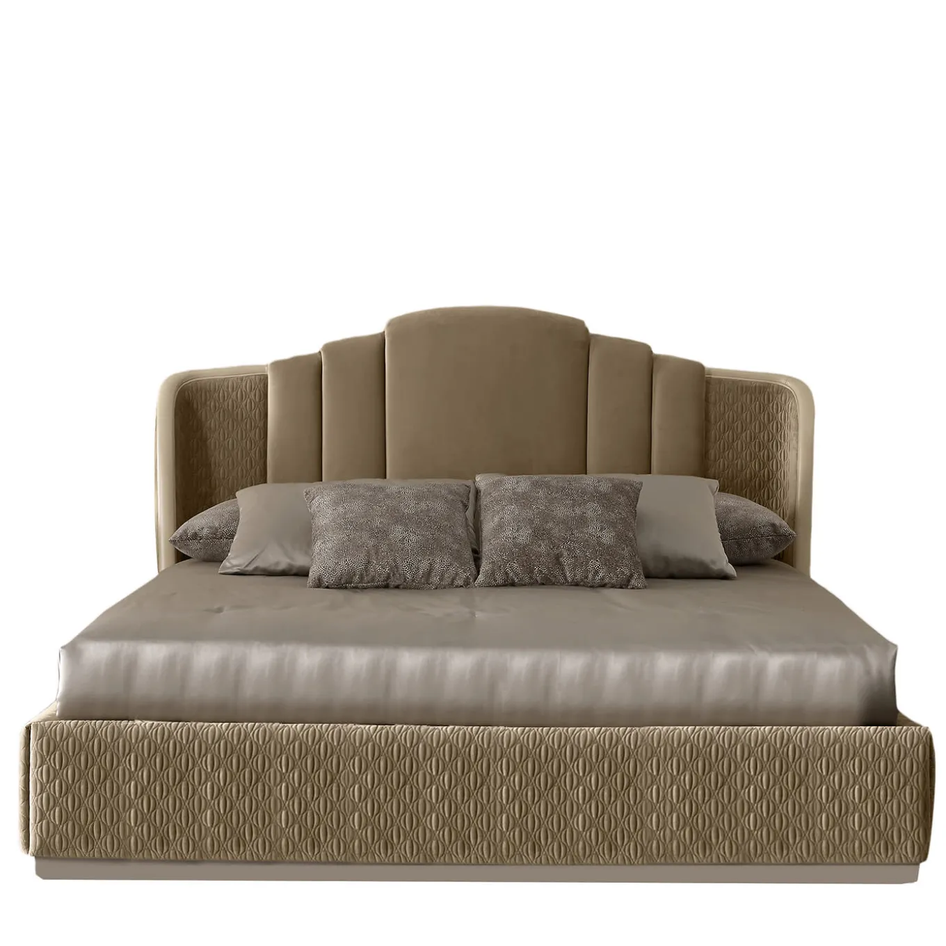 A signature design among AR Arredamenti’s sophisticated collections, this bed is an exceptional design of timeless elegance. Masterfully handcrafted, it features a polished structure enriched with beige textiles. Net is included, while the mattress, cushions, and blankets are not. Please consult the Concierge for further details.