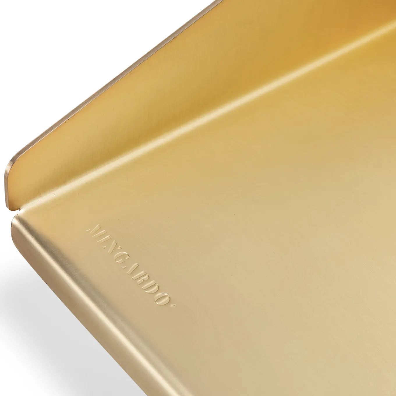 Simple and essential, this floating shelf provides a ledge to display photo memories or art in a minimalist design that is perfect for a modern and industrial-inspired home. Made of a single sheet of stainless steel masterfully bent and modeled by expert hands, the light brass finish blends effortlessly with a variety of color schemes. Please ask the Concierge for more details.
