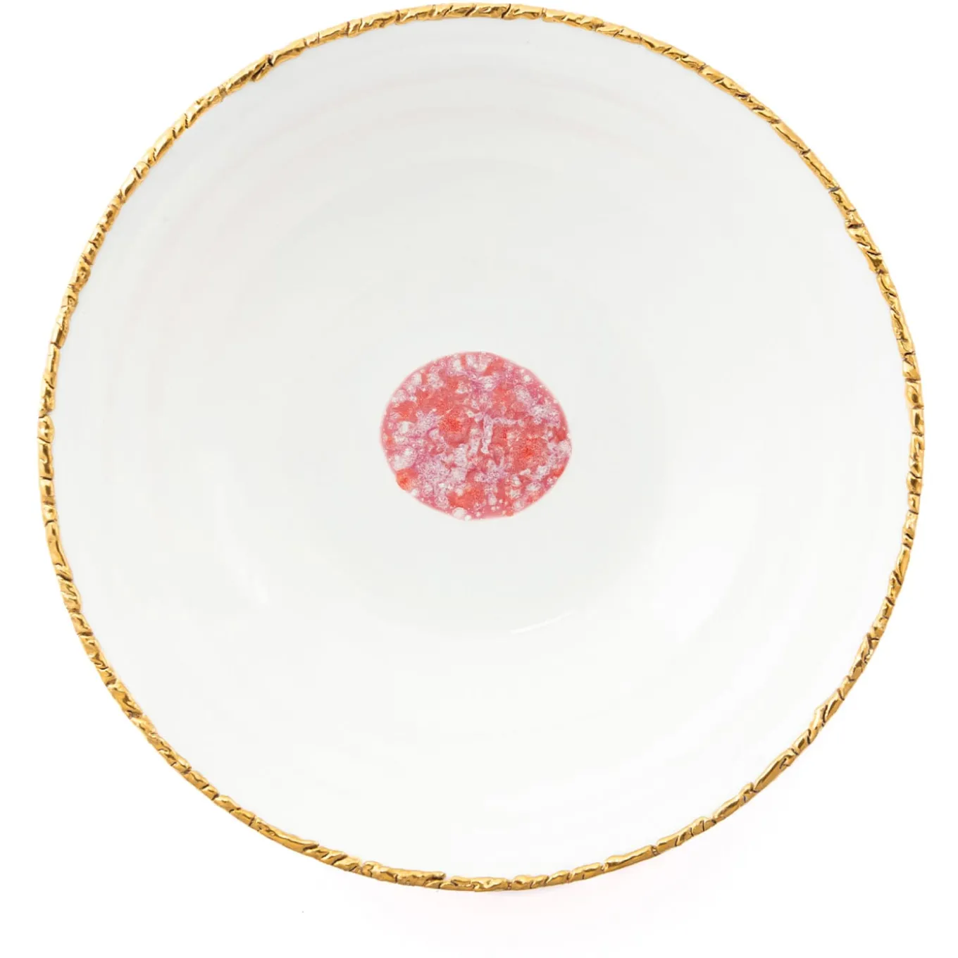 This salad Bowl, characterized by a Craquelé Edge, is entirely hand-decorated. Small imperfections, subsidence, and ripples of the surface are deliberately present and they are a feature of the product, proving the hand-made manufacturing procedure.