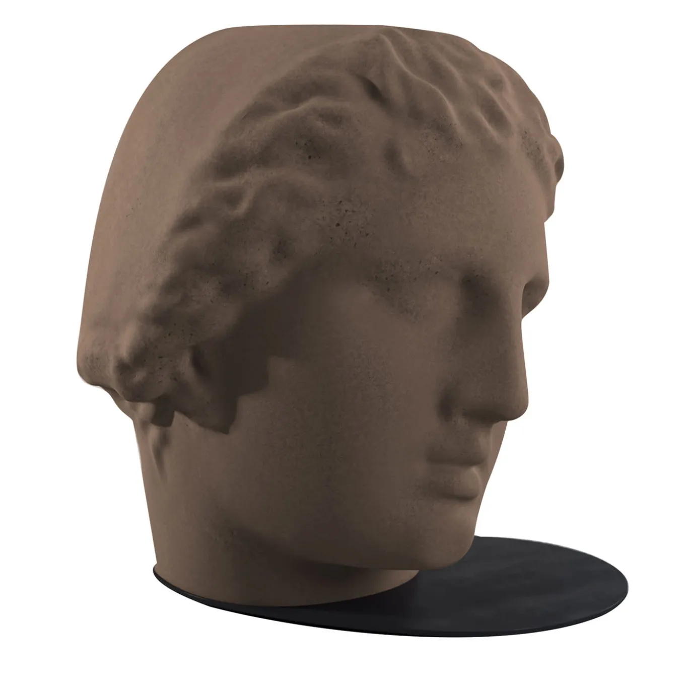 This anthropomorphic stool is in the shape of a mysterious female bust, whose classical form softens the industrial edge of its concrete material. It can be mixed and matched with other items in the line, which was designed by Marialaura Rossiello Studio Irvine. Its soft, dark chocolate color adds to its enigmatic mystique.