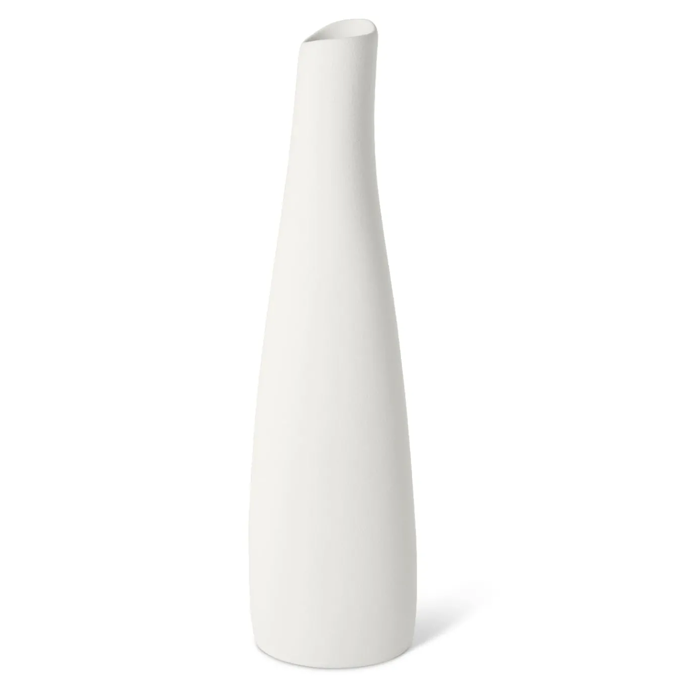 Vases or bottles? These five milk-colored refined sculptures become an unmissable collection, that brings movement to the surroundings. The dynamic play of soft and minimalistic lines gives this piece a refined style, that represents movement and fluidity.
