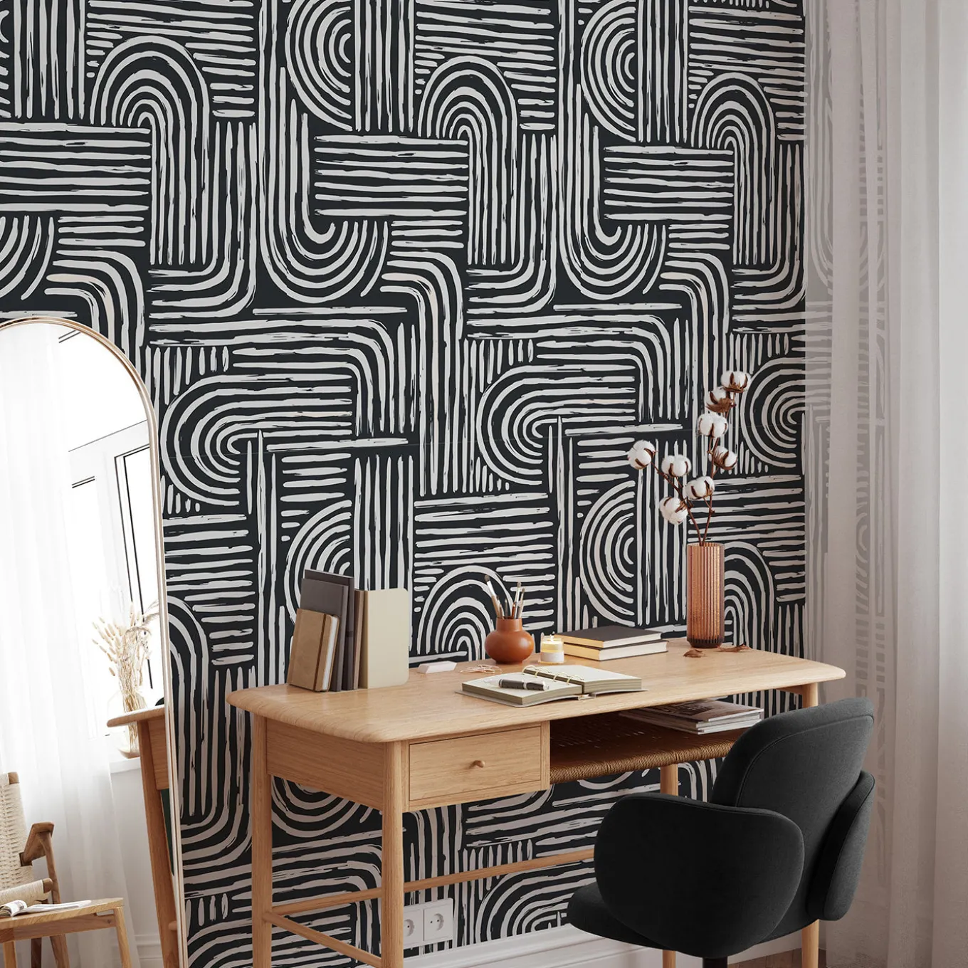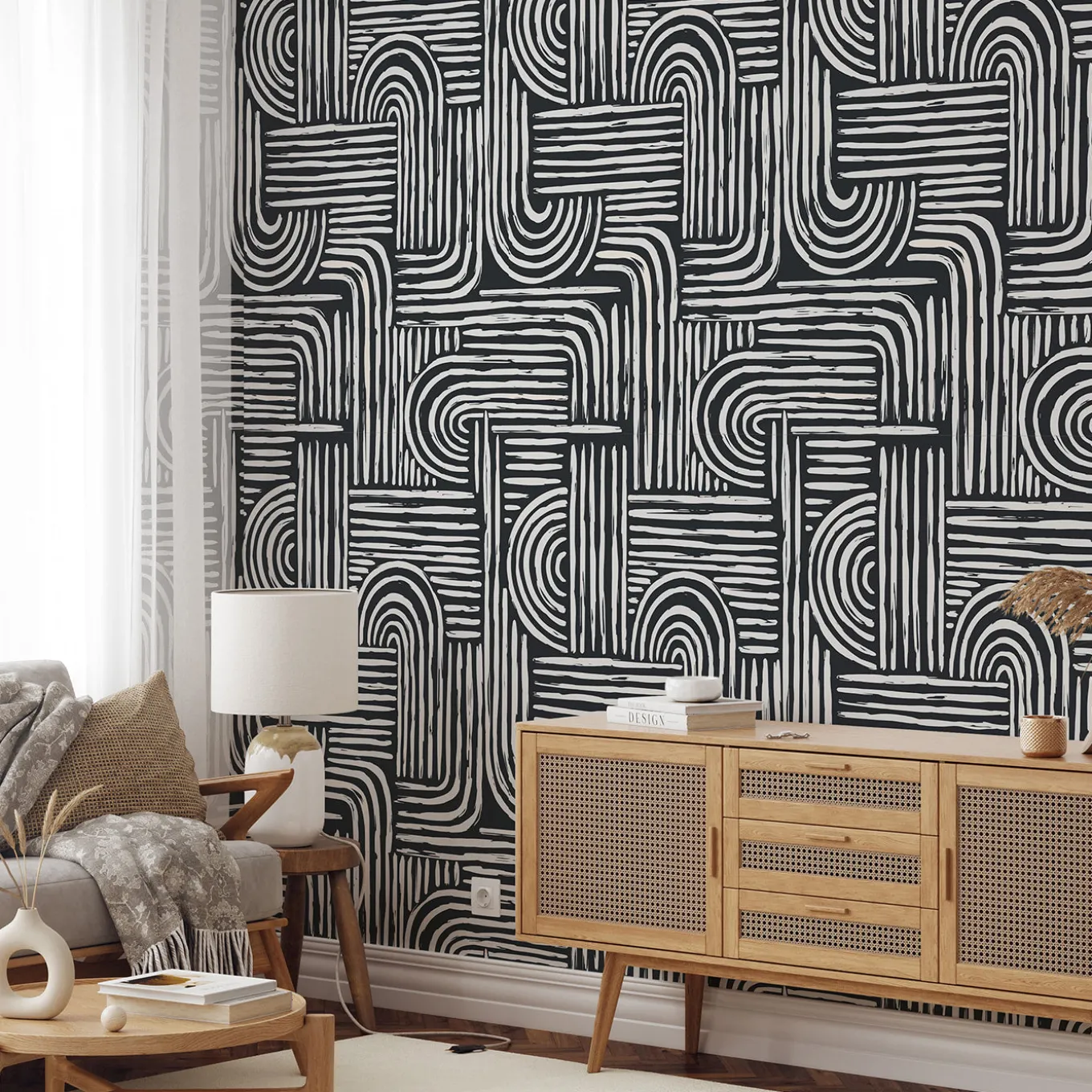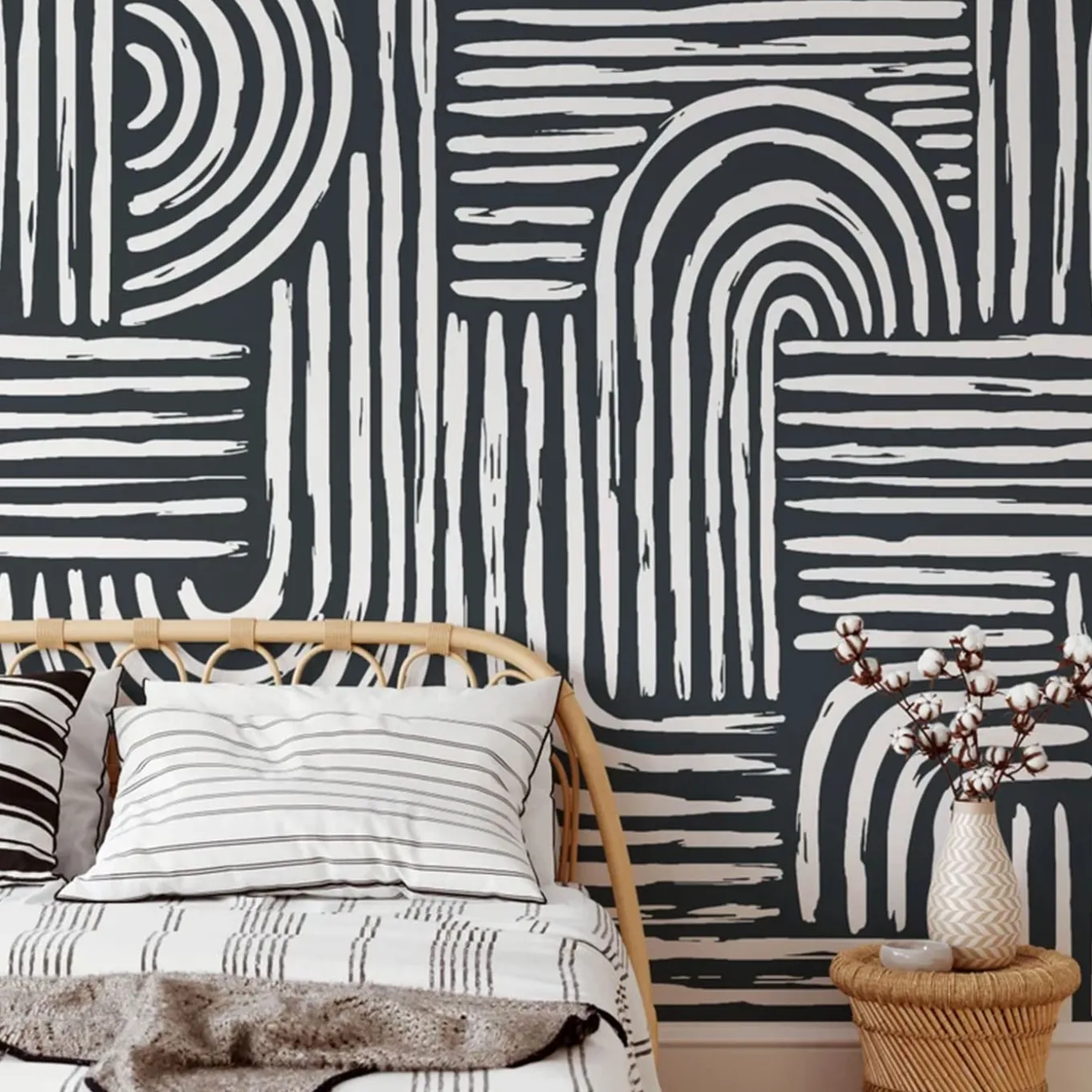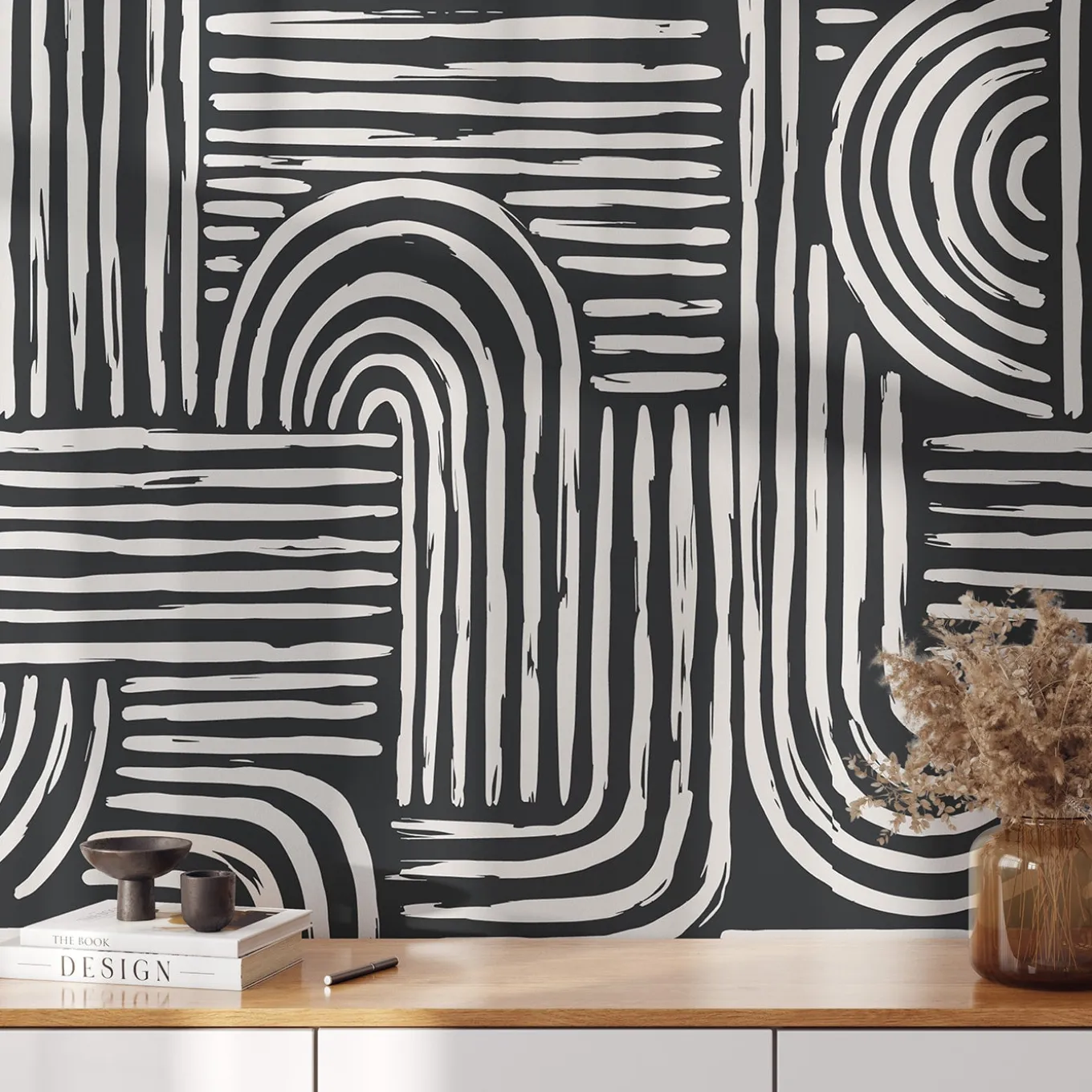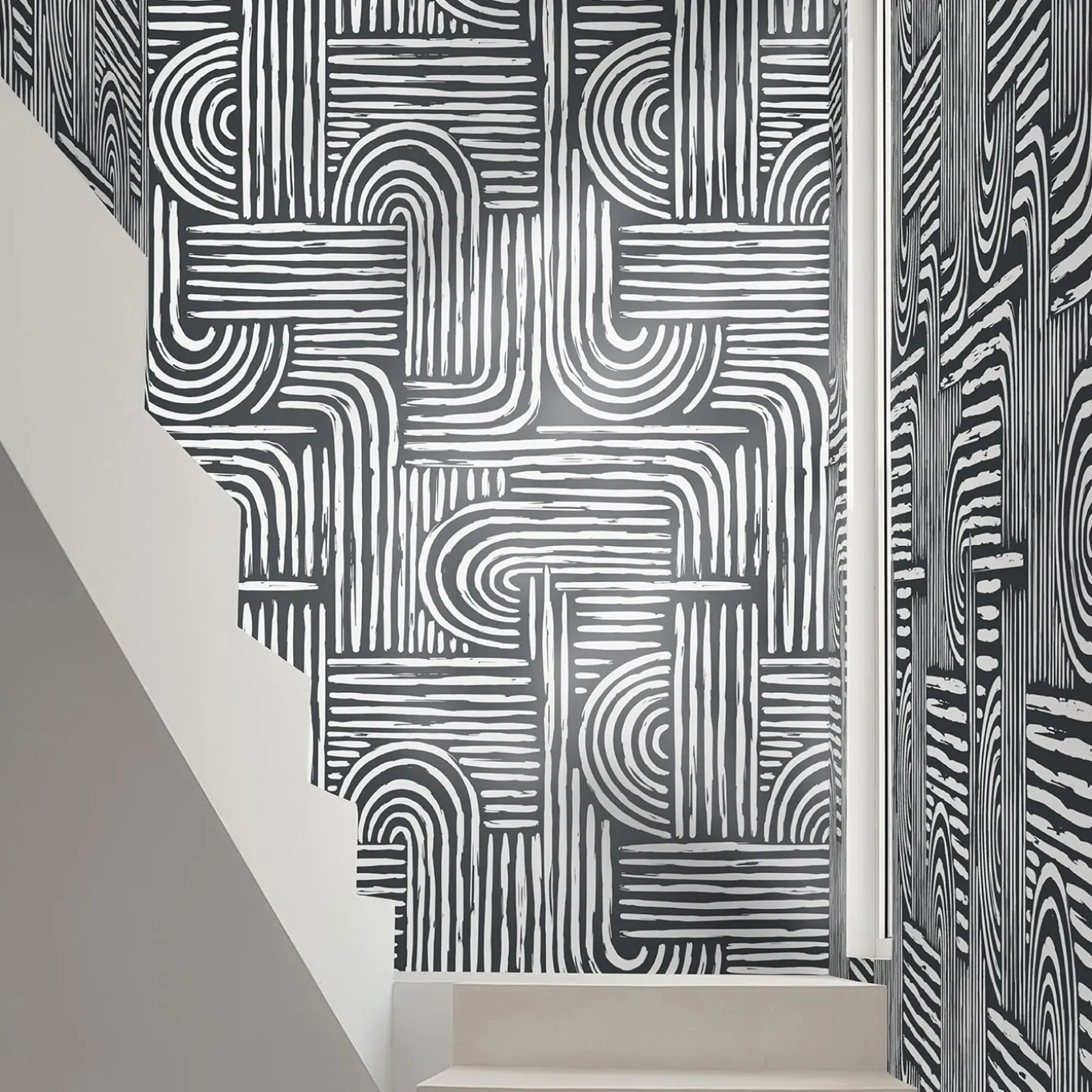 Ecological wallpaper, crafted from vegan water-based inks, designed and printed in Italy using the most advanced technologies. Versatile for walls, shelves, and furniture, for lovers of abstract and intriguing design this wall covering is a must-have. Created with the geometric brushstroke technique, it adds an artistic flavor, perfect for any space. It’s a unique focal point in any setting. Instructions are included. The price refers to one package containing 8 sheets of premium wallpaper. Each sheet measures 27.5 x 39.4 inches (70 x 100 cm), for a total coverage of 59.2 sq. ft. (5 mq).