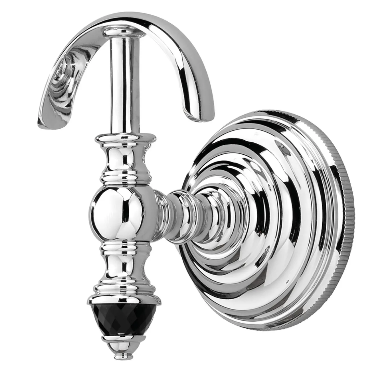 The precious diamond-edged black glass ends characterize the refined design of a turned brass robe hook, worked with extraordinary craftsmanship.